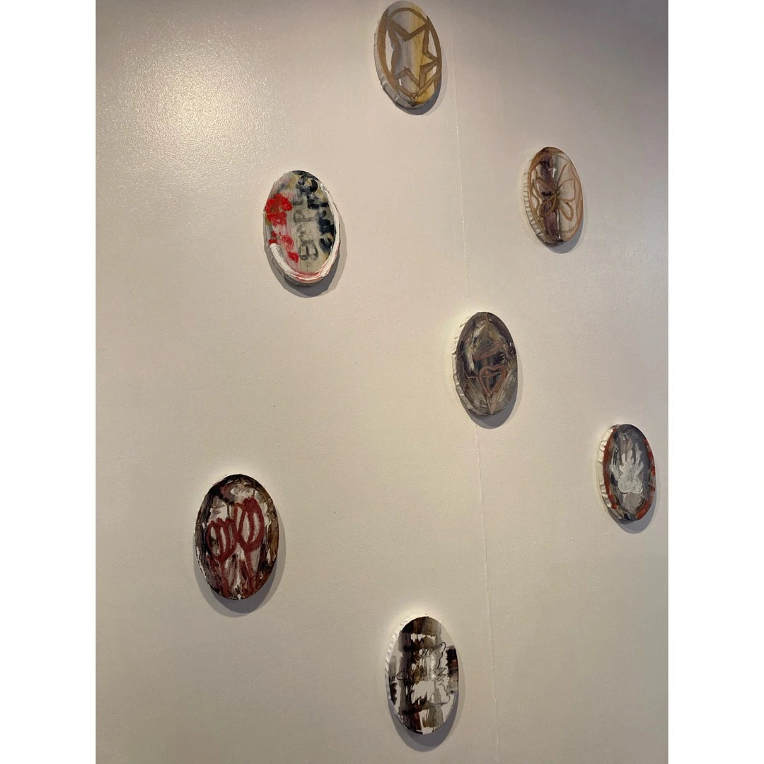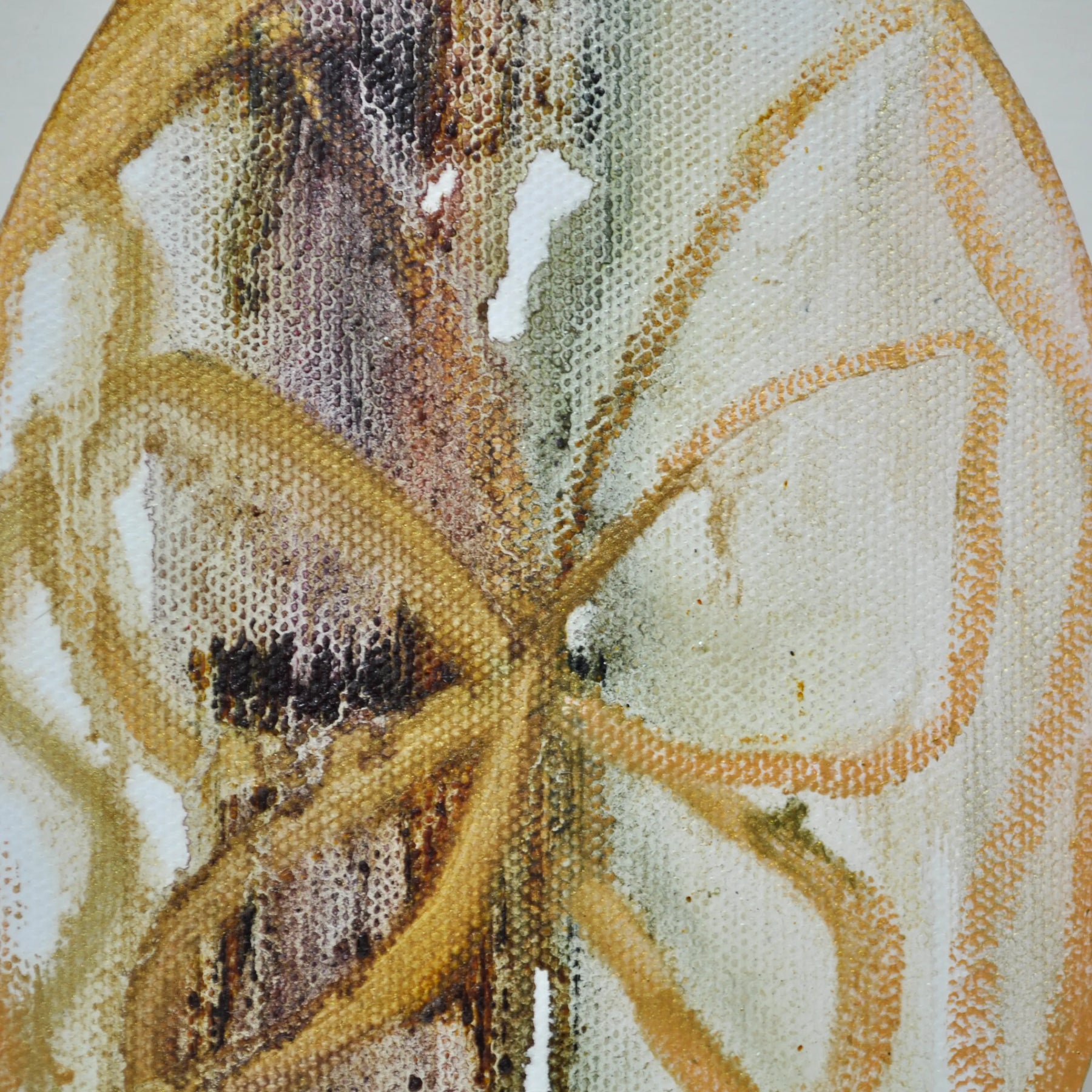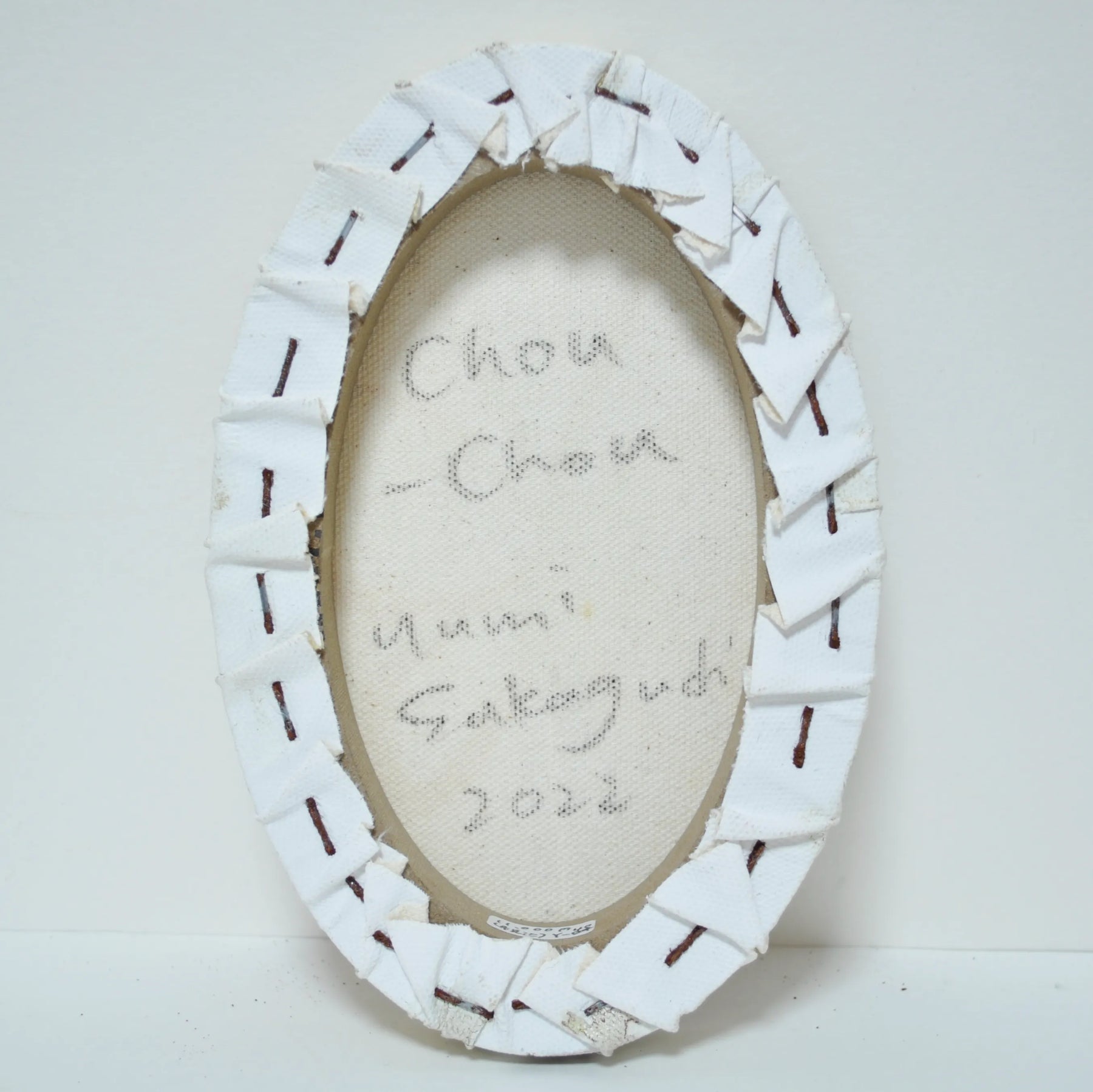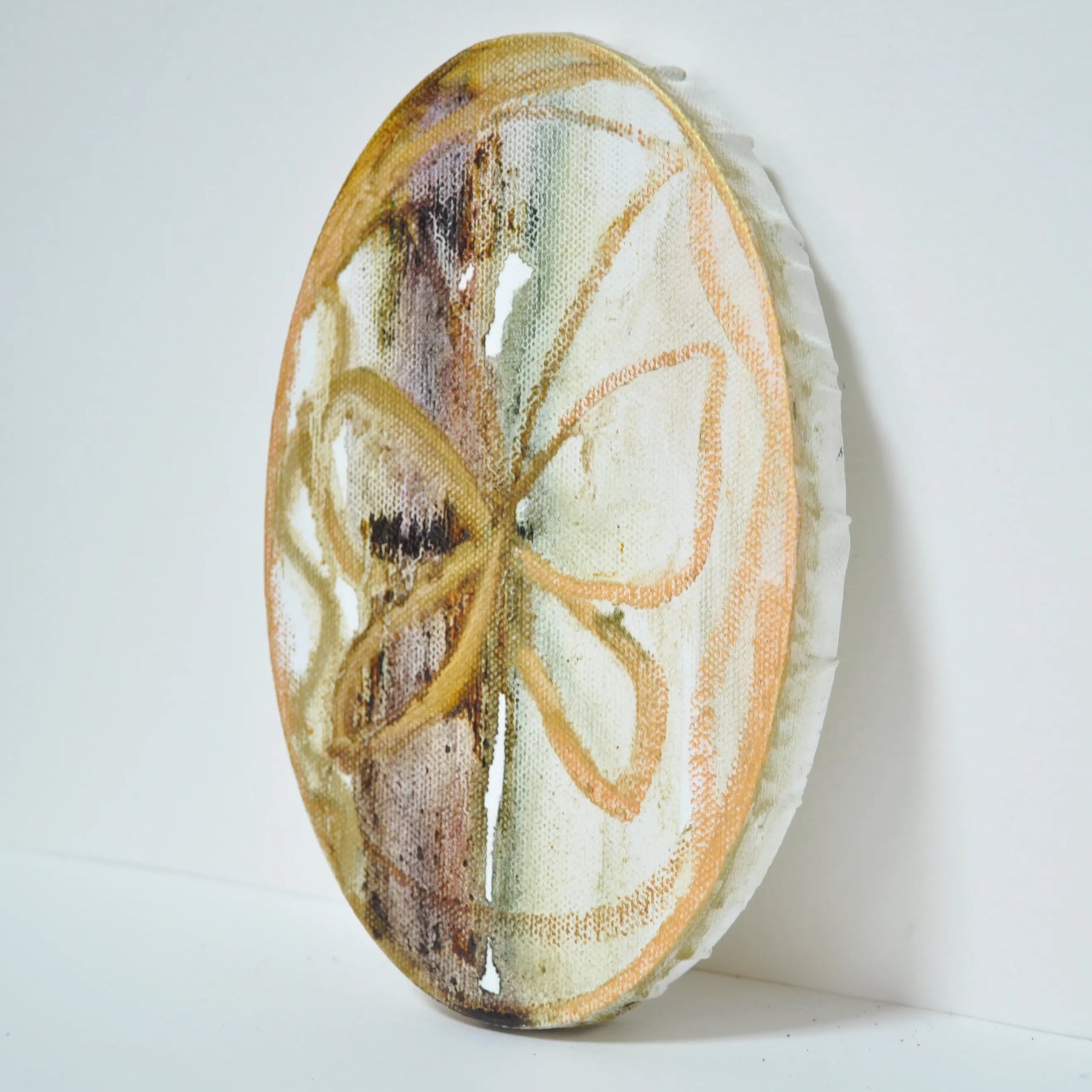 クリスマスツリーのオーナメントのように、壁にかけられる小さな絵画です(オーナメント・シリーズ)。この作品は蝶々を描いています。
