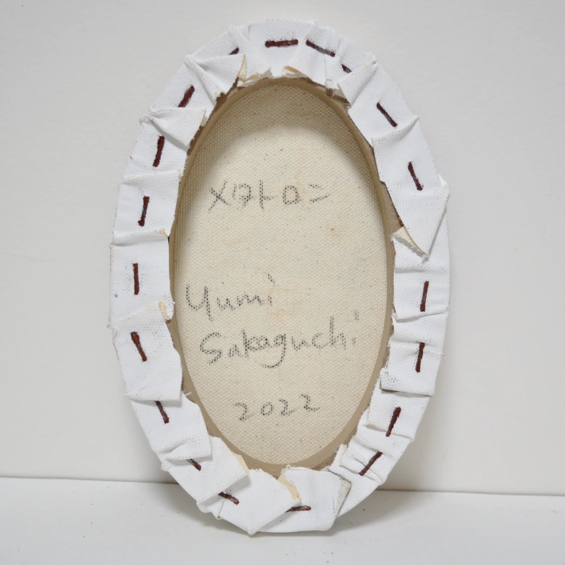 クリスマスツリーのオーナメントのように、壁にかけられる小さな絵画です(オーナメント・シリーズ)。メタトロンという沢山の羽と目を持つ天使の名前を、カタカナのまま描きました。