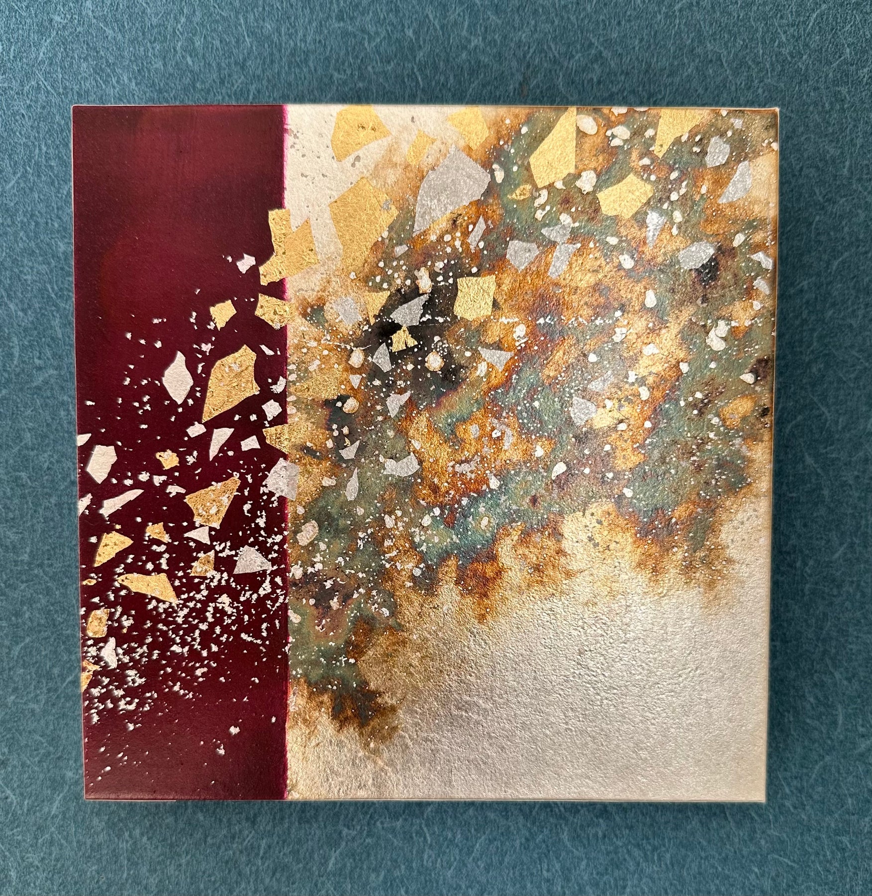 日本画、 木製パネル、麻紙、水干絵具、銀箔、金属箔