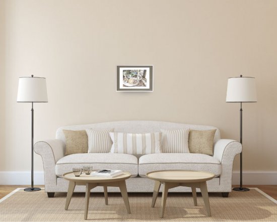 額縁とマットが絵の色を引き立てます。額縁はざらっとしたマットな塗装で、しっくりと絵に馴染みます。
