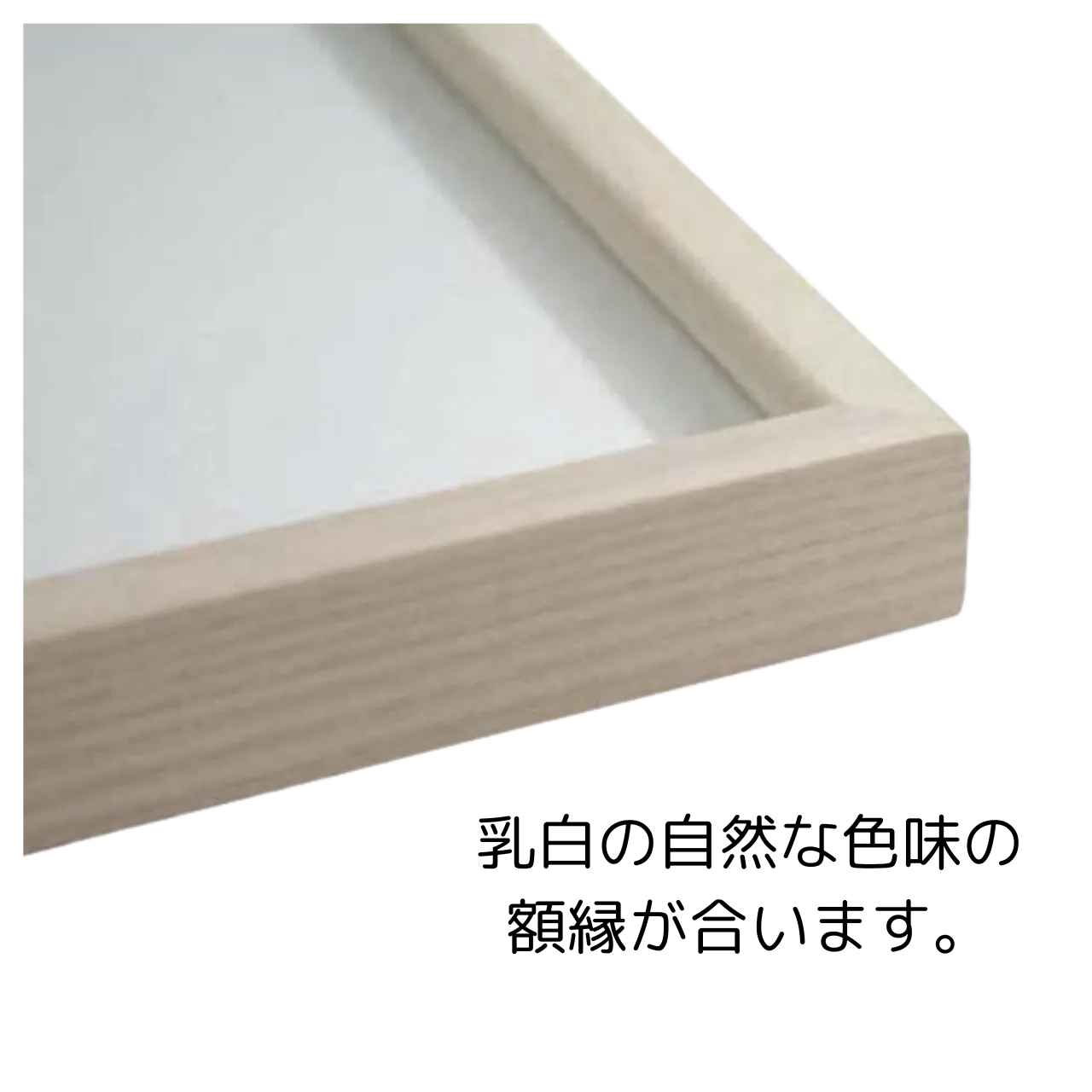 サインあり。1点もの手描きのオリジナル作品です(印刷、ポスターではありません。) 表面はオイルパステル特有の厚みがあり、少しデコボコしています。 本シリーズはこれまでホテルやオフィス、病院などにも飾られている人気の作品です。 額はナチュラルな乳白の額縁です。