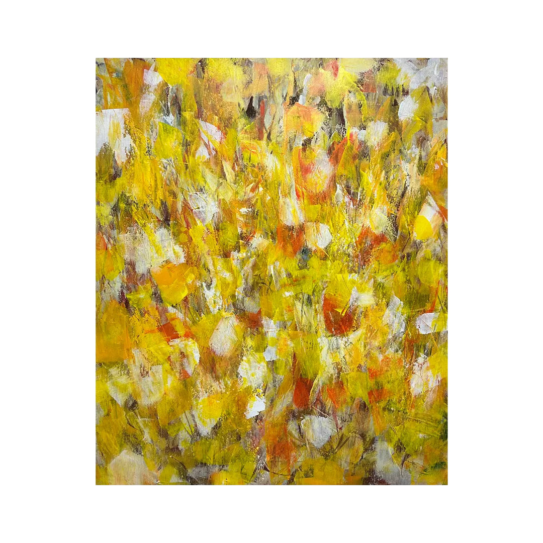 鮮やかな黄や橙が重なり合い、草原を渡る光が砕け散るような躍動が広がります。飾る瞬間、部屋に軽やかな温度が差し込み、暮らしの輪郭がそっと明るくなります。リビングや書斎に置くと木質の家具とも調和し、空間に穏やかな活気を添えてくれます。