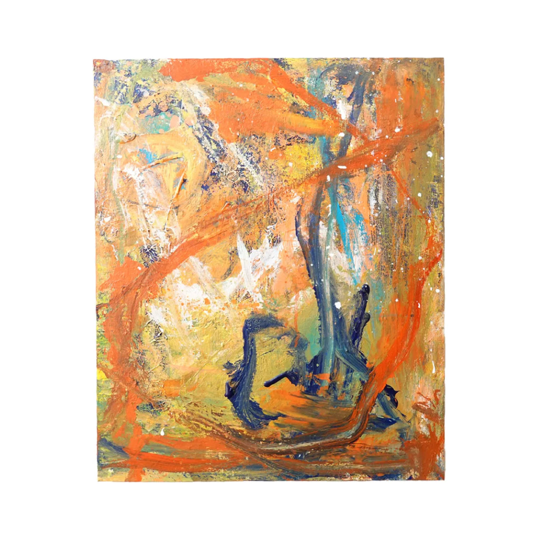 橙の奔流に青が差し込み、刷毛の跡が風向きを示すように画面を走ります。重なり合う層は熱と冷の往復を生み、視線は留まらず、内側の鼓動に触れていきます。壁に掛けた瞬間、部屋には張りのある動線が生まれ、空気が一段引き締まります。コンクリート調の空間や、革や金属を取り入れたリビング、作業机のある書斎にもよく映えます。
