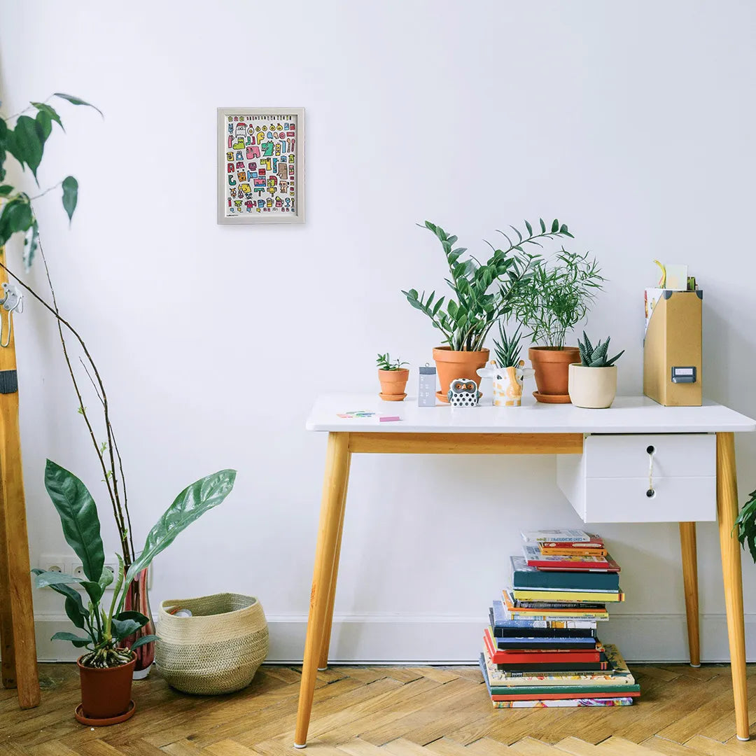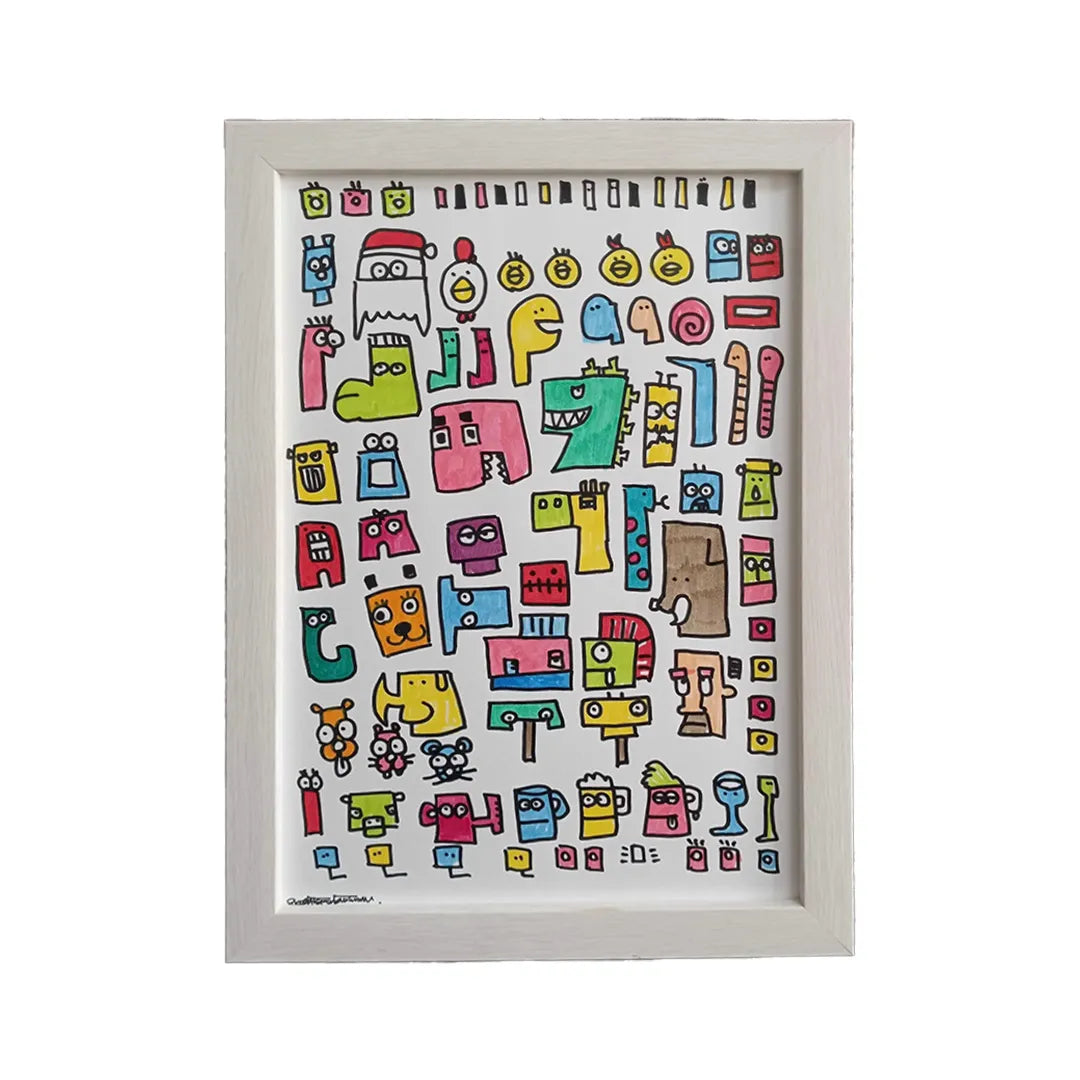 多彩な色使いで描かれた個性豊かなキャラクターたちが、整列しながらも自由に個性を主張する、遊び心あふれる一作です。一筆書きのような軽妙なラインと鮮やかな色彩の対比は、眺めるたびに新しい発見と笑顔を届けてくれる、心弾むエネルギーを湛えています。この作品を一点飾ることで、お部屋がパッと明るい活気に包まれ、住まう人の創造性を心地よく刺激する空間へと変わるでしょう。子供部屋やリビングの壁に、シンプルな白い家具と合わせて設えるのが素敵です。