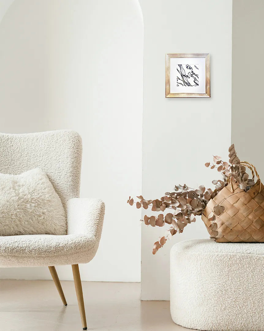 しなやかな曲線とモノトーンの色彩が交差し、まるで水面に映る都会の夜景を切り取ったような、洗練された情緒を醸し出します。ステンドグラスのように区切られた独特の構成は、見る角度によって新しい物語を語りかけ、知的な好奇心を静かに刺激してくれるでしょう。この一作を空間に迎え入れるだけで、壁面がモダンな印象に引き締まり、日々の暮らしに都会的な洗練をもたらしてくれます。コンソールテーブルの上や廊下に、シルバーの調度品と合わせて飾るのがおすすめです。