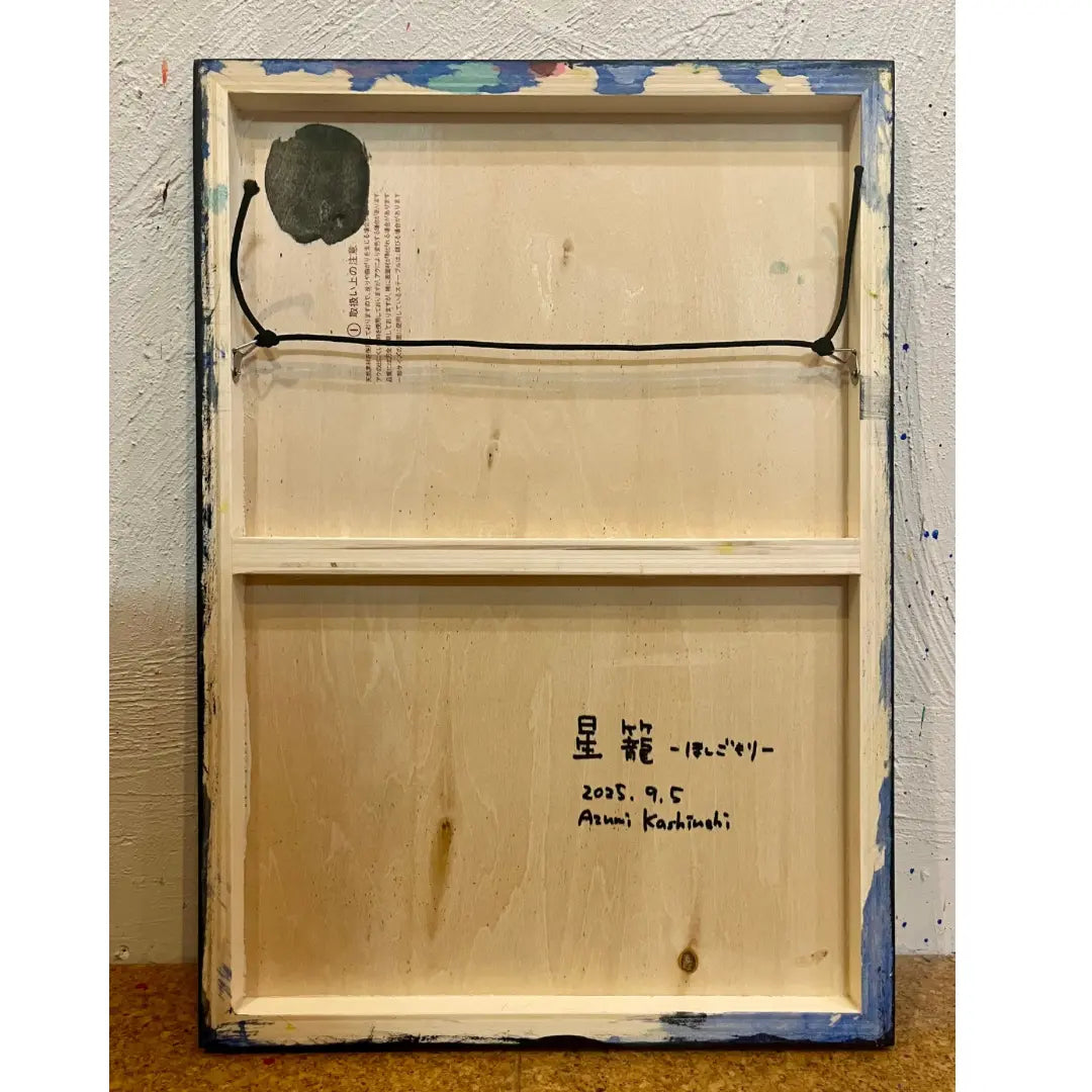 「もっと自由に、絵との関係を楽しんでほしい」「絵についてしまった傷や風合いの変化も、古道具の味わいのように楽しんでほしい」という願いから生まれた「触れる絵画」シリーズの1作品。絵の表面も優しく触ることができます。 手から伝わる感触、光で変わる色の加減、好きな絵の向きなど、楽しみながら飾る場所の選定、絵との交流をしていただけます。
