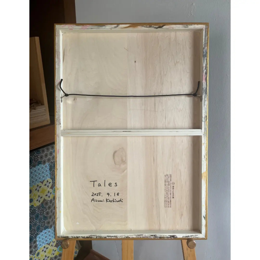 「もっと自由に、絵との関係を楽しんでほしい」「絵についてしまった傷や風合いの変化も、古道具の味わいのように楽しんでほしい」という願いから生まれた「触れる絵画」シリーズの1作品。絵の表面も優しく触ることができます。 手から伝わる感触、光で変わる色の加減、好きな絵の向きなど、楽しみながら飾る場所の選定、絵との交流をしていただけます。