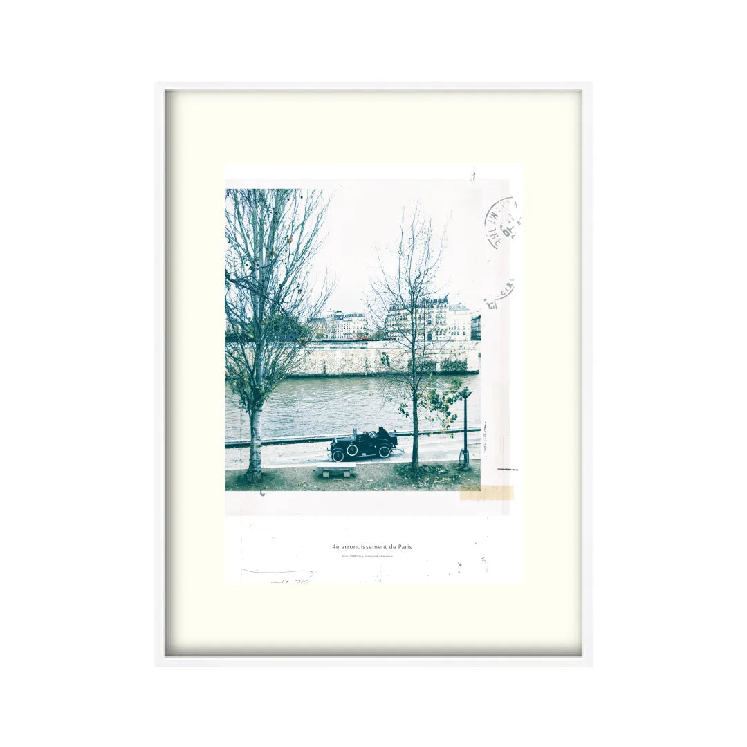 パリの朝の風景と凛とした青をまるでアルバムに写真を貼るようにコラージュした作品。ムッシュの穏やかな笑顔や少し肌寒い空気がキンと伝わってくるようです。シンプルでスタイリッシュなこちらの作品はオフィスや書斎には勿論、玄関に窓を開けるように飾るのもおすすめです。大きなサイズの作品なので一枚でお部屋のインテリアをワンランク上に引き上げてくれそうですね。