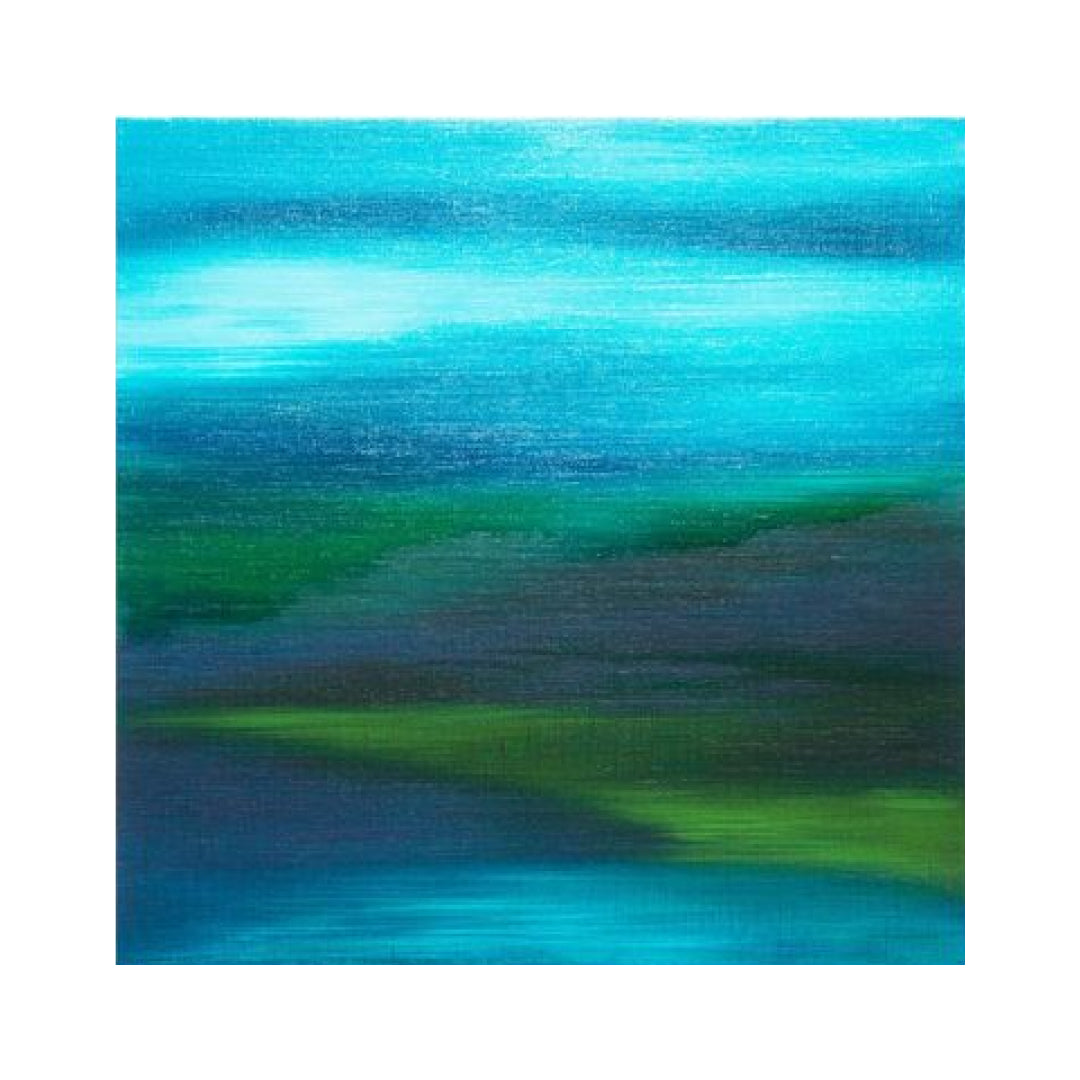- 私は、遠くの空と海(あるいは稜線)の境界を臨んでいます。それは見ることのできる最も遠い場所であり、色彩や輪郭はおぼろげで、遠近さえも感じない平面的な風景として捉えられます。その境界を隔てて見えるほんのわずかな空気の違いと、おぼろげながらも微かに見える空際(そらぎわ)を見据えて、作品を描いています。