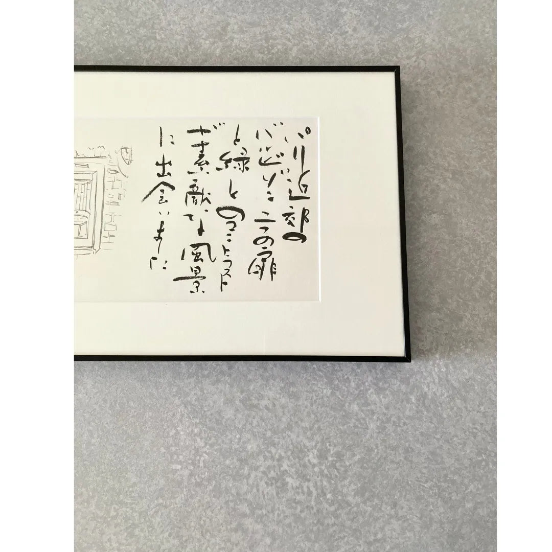 ⬛︎作品について フランスの芸術村・バルビゾンからのエアメールをイメージして制作しました。 淡い墨で描いた絵のやわらかな表情と、濃墨による筆文字の力強さが画面に心地よいメリハリを生み出しています。 落款には絵手紙調のひらがなを用い、全体にやさしく統一感を持たせました。 どこか懐かしく、それでいて現代的な空気感を大切にした一作です。