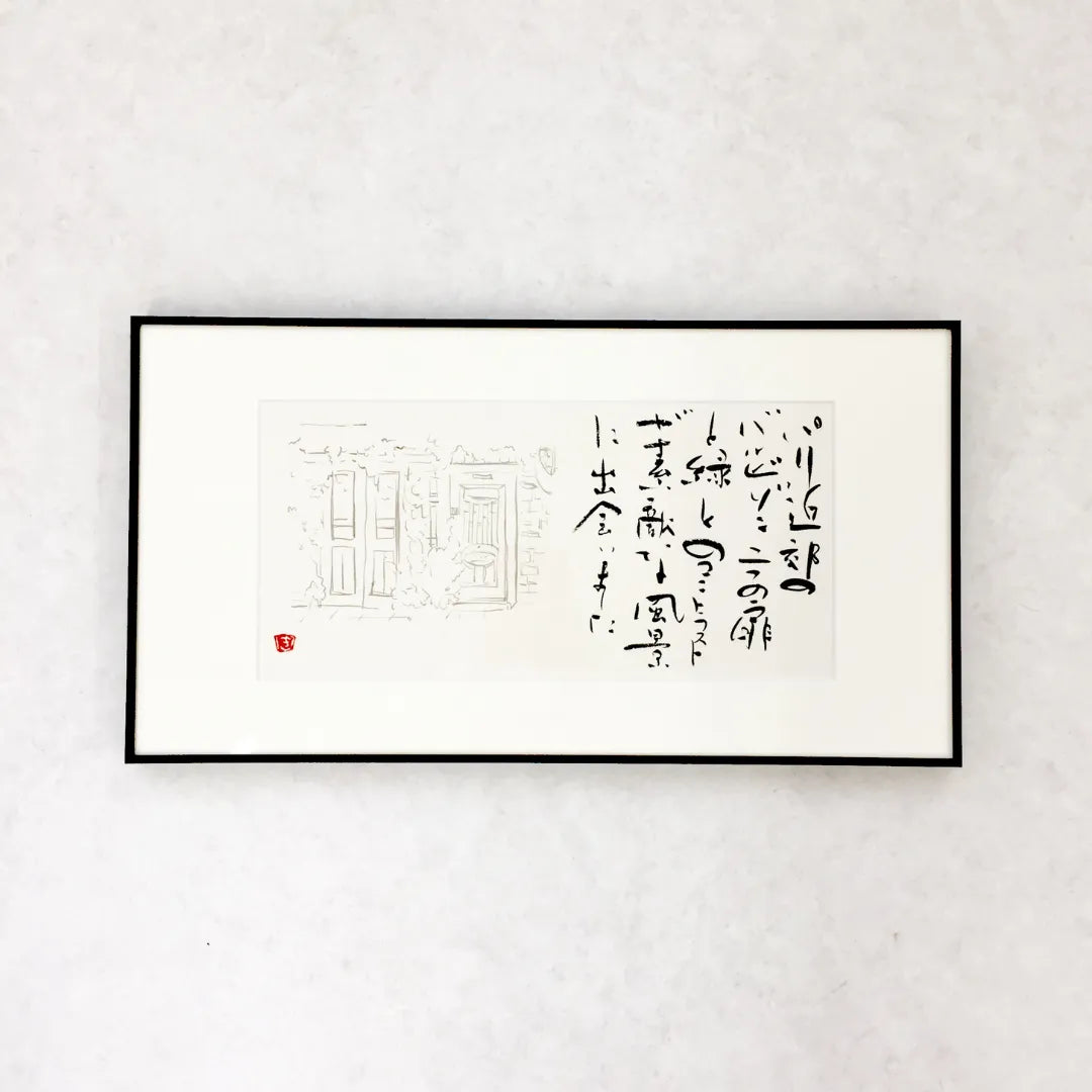 繊細なペン線で描かれた街並みと、流麗な墨文字が溶け合い、遠い異国の風を運んでくるような叙情的な雰囲気を纏っています。余白に宿る静かな呼吸は、眺めるほどに旅先で出会った感動を呼び覚まし、心に穏やかな充足を届けてくれるでしょう。この情緒豊かな一作を飾ることで、壁面に知的な物語が加わり、空間を洗練された旅情で満たします。