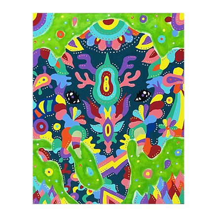 森林のような深いグリーンのキャンバスに、しっかりと根を張るように描かれた大きな木。