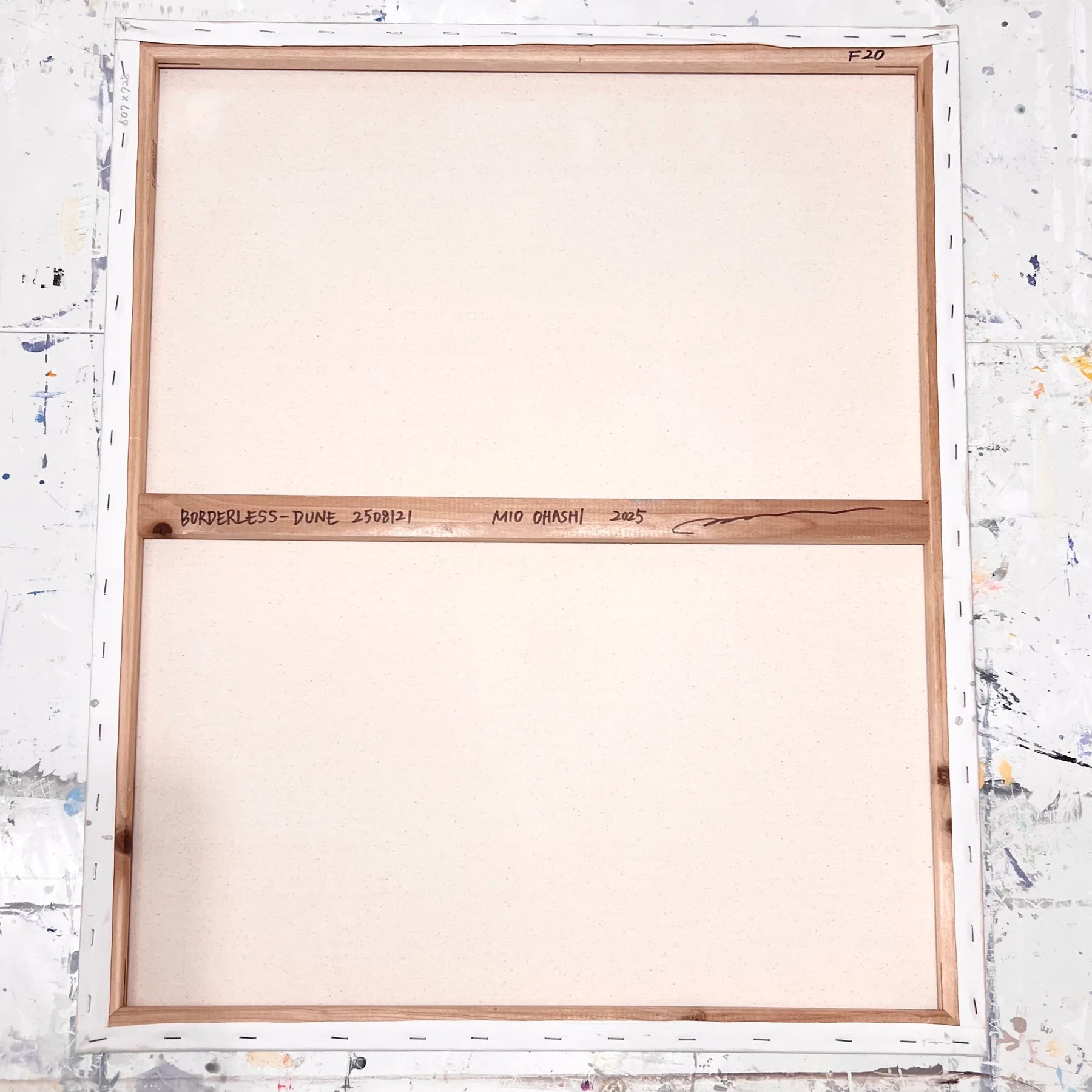 BORDERLESS - 境界を超える旅 どこまでも広がる、無限の空。はるか彼方にのびる地平線や水平線。 そこに太陽の光が差す瞬間、境界線は輝いてやさしく溶け合い、上と下の世界を隔てていた境目がなくなり、ひとつの世界になる。 そんな瞬間を表現した作品シリーズです。 抽象画のため、環境や心境などによって「どう見えるか」が変化します。 朝陽や夕陽に見えたり、海や湖に見えたり、 大地や砂丘に見えたり、空と雲に見えたりと、 光の当たり方や時間帯、飾っていただく方の心情に寄り添い、見え方が変わるのが特徴です。