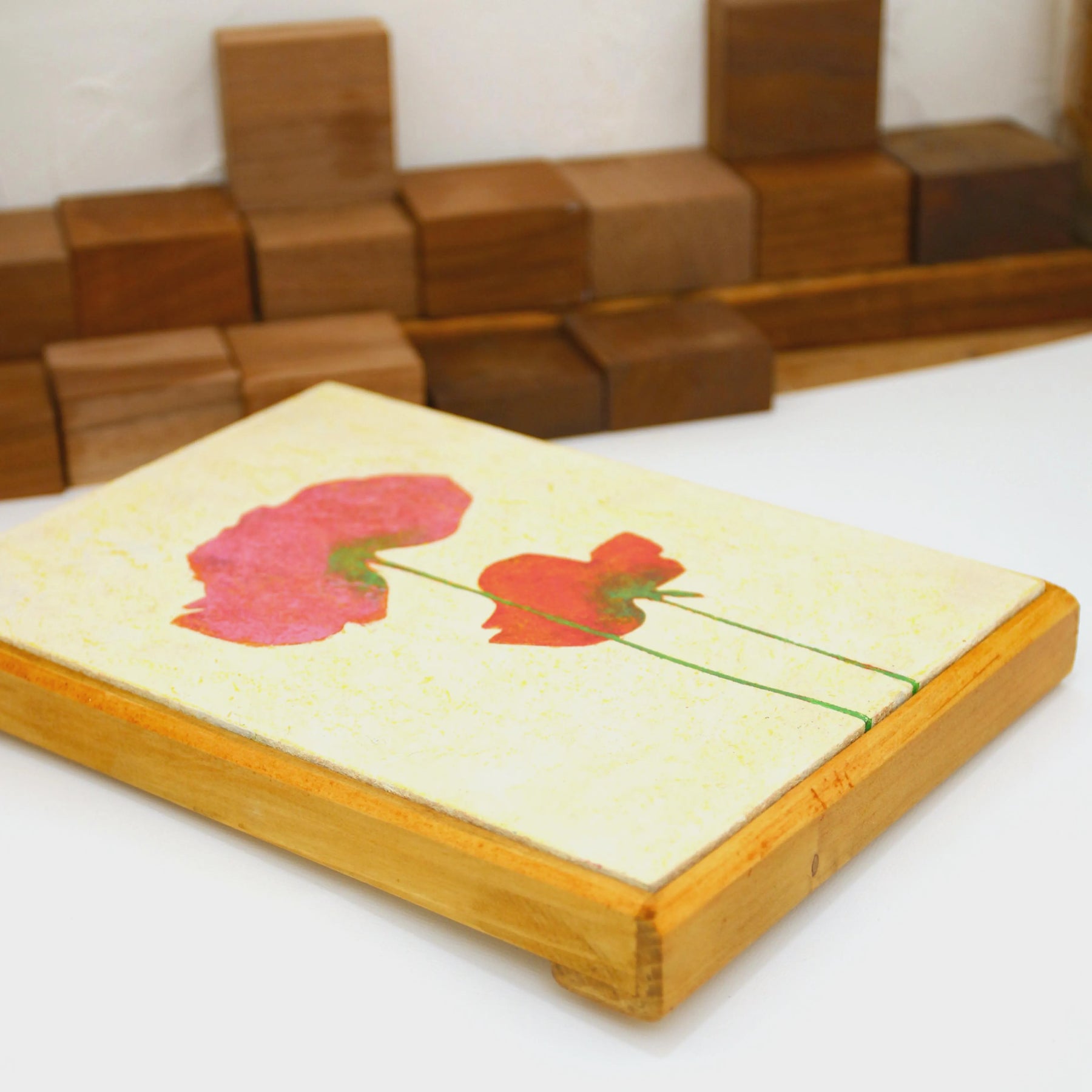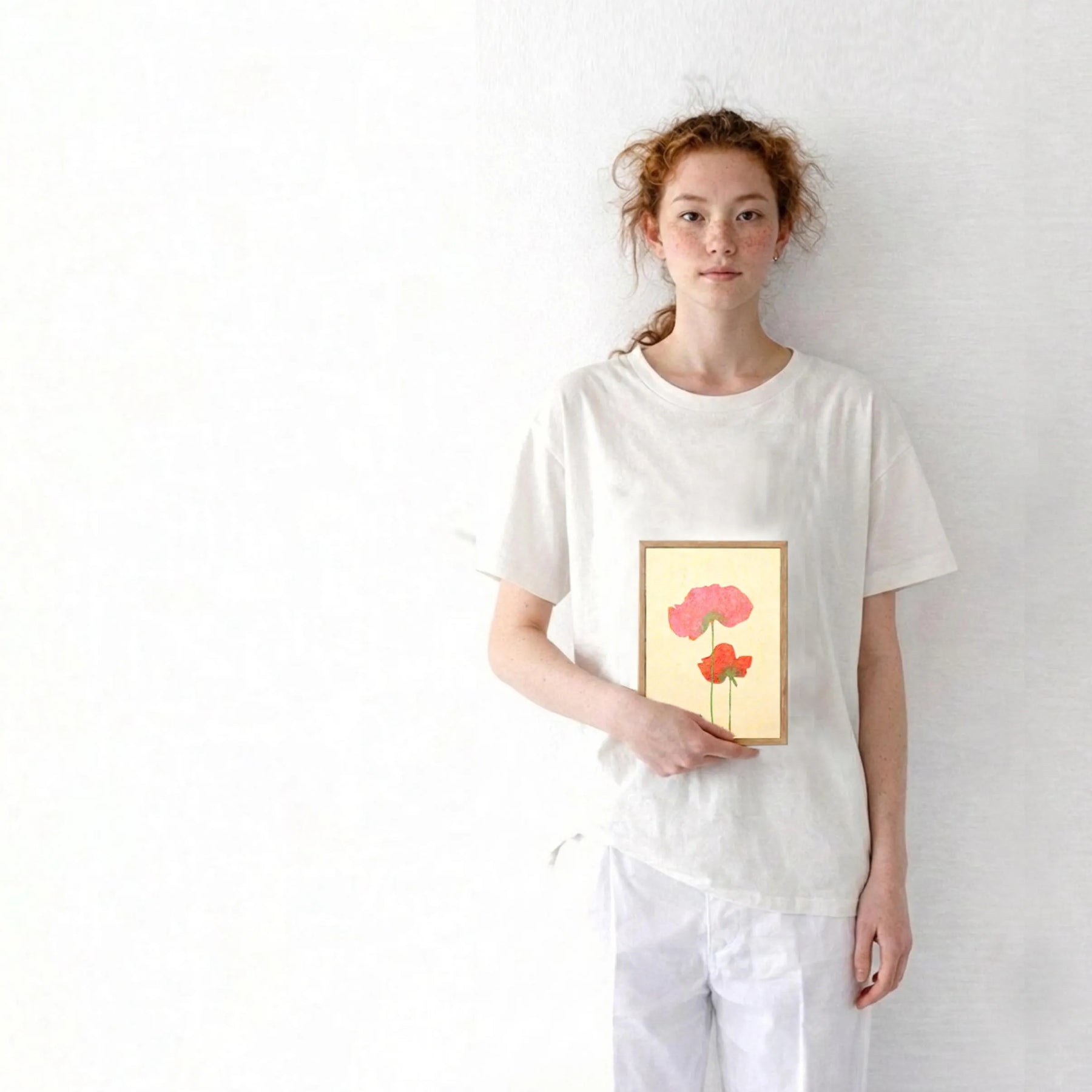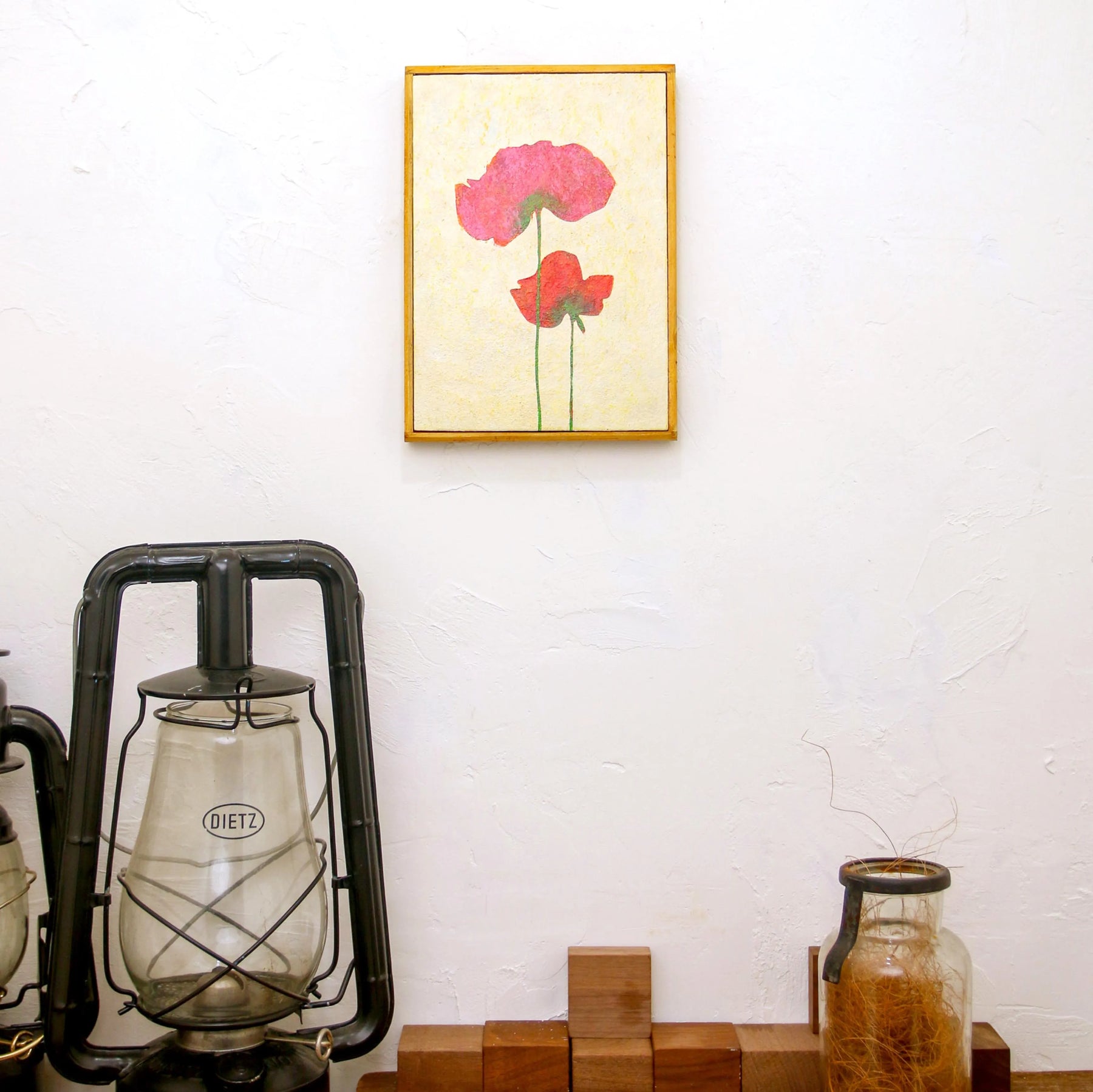 柔らかな和紙のような質感の中に、重なり合う二輪のポピーが、体温を感じさせるほど鮮やかに咲き誇っています。繊細な輪郭から溢れ出す色彩は、日常の何気ない幸福を映し出し、眺めるほどに心が穏やかな温度で満たされるでしょう。この温もりのある一作を飾ることで、室内には慈しみの空気が広がり、暮らしに安らかな和みを灯します。寝室や玄関に、素朴な木製家具と合わせるのが最適です。
