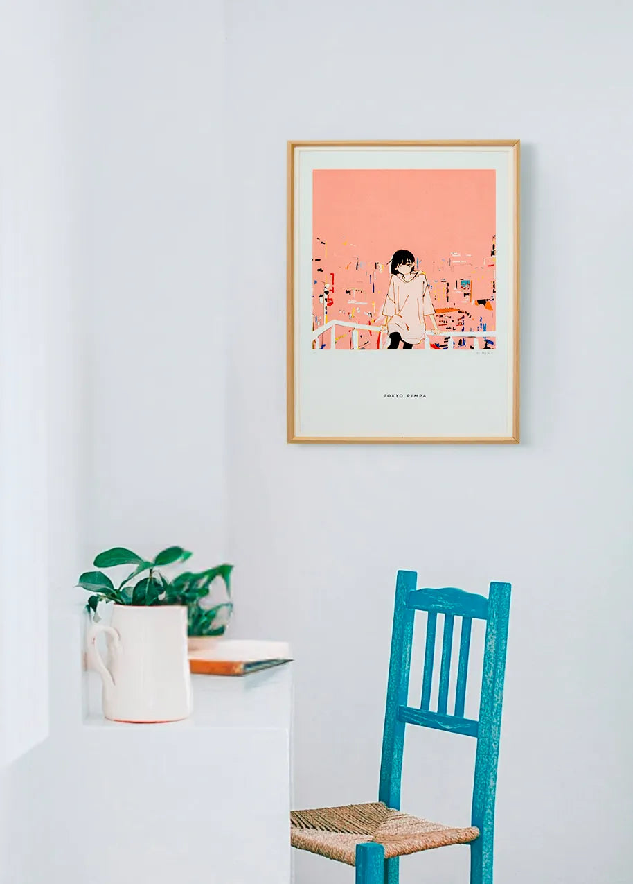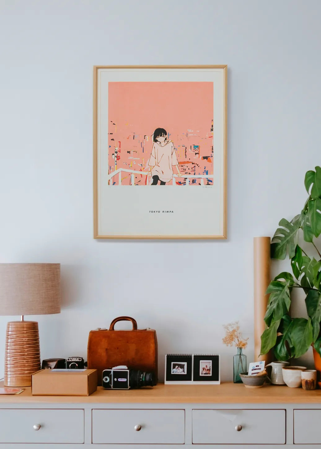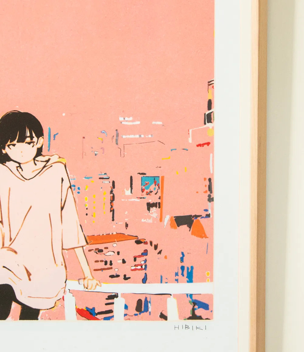 静かな街にひとりきり。桃色に染まる都会の景色を背景に、少女のまなざしがそっと日常をほどいていきます。余計な言葉を必要としない、心地よい距離感が胸に残ります。壁に飾れば、部屋全体の空気がふわりと緩み、時の流れが少しだけやさしく感じられます。ナチュラルな木製フレームは北欧調のインテリアや書斎、ベッドサイドとも自然に調和し、静けさとあたたかさを添えてくれます。