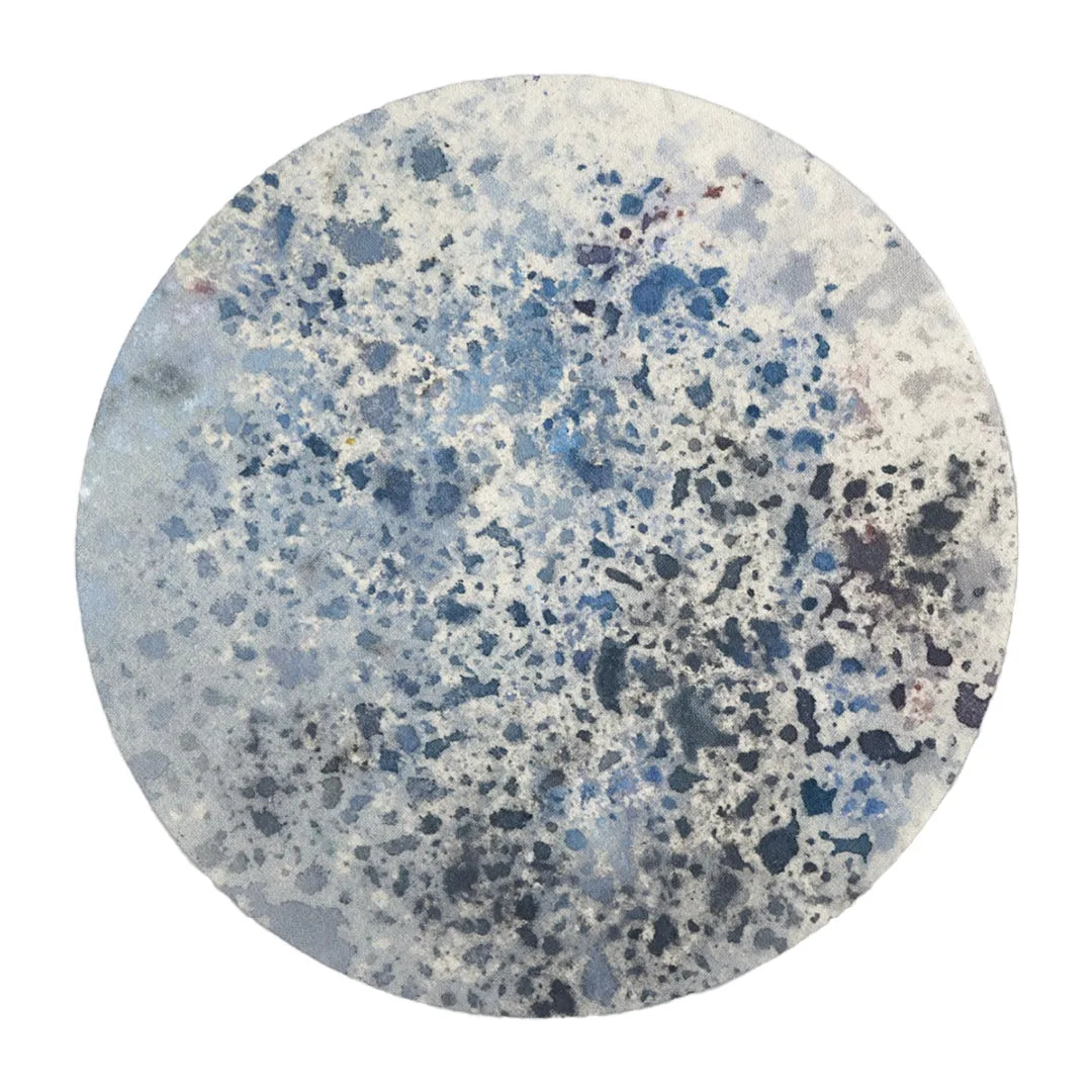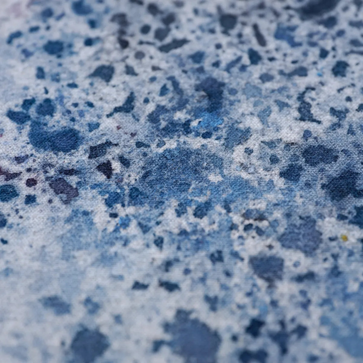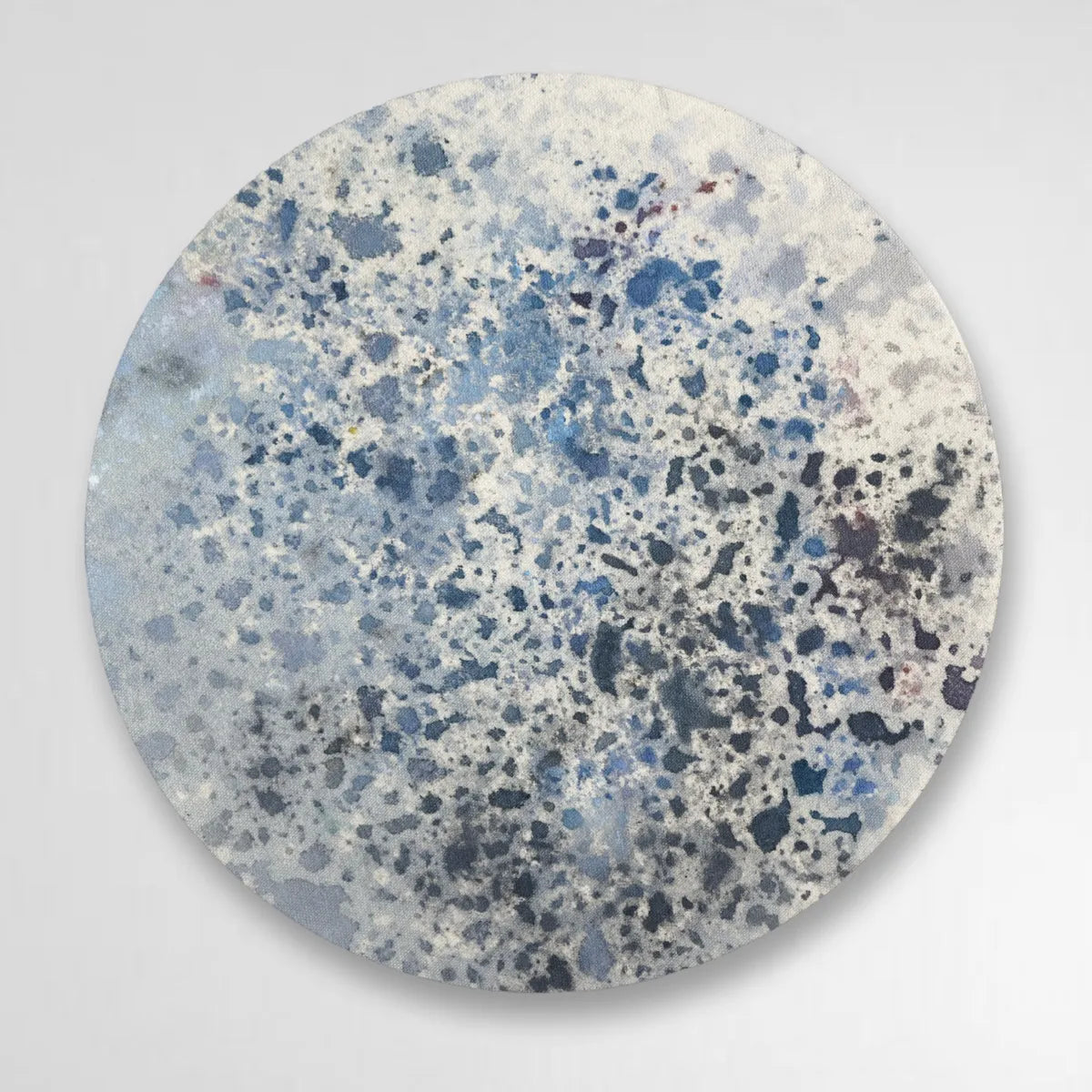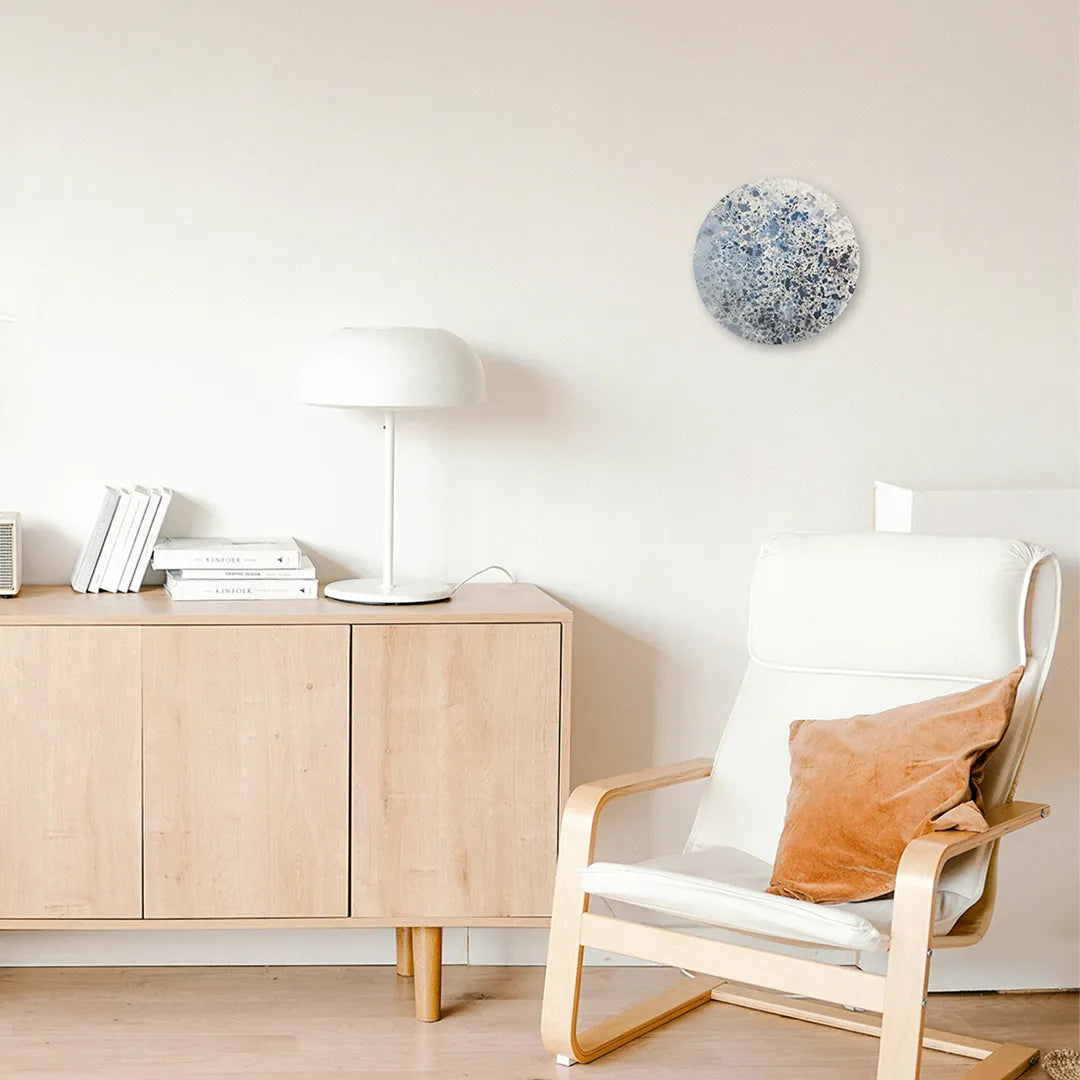 細かな点描が重なり、冷たい空気の中に漂う粒子のように視界へ広がります。青や墨の揺らぎが静かな鼓動を生み、見るほどに奥へ引き込まれる感覚が芽生えます。壁に掛けるだけで、部屋に澄んだ緊張感がそっと満ち、気持ちを整えるような余韻が漂います。モノトーンを基調としたリビングや書斎にも自然に寄り添い、空間に控えめな深みを添えてくれます。
