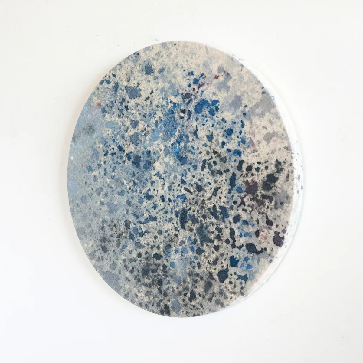 この作品群は、2025年2月5日から2月9日までのおよそ96時間、キャンバスを雪に晒し制作しました。まずは雪が降り積もり、日が登ると気温の上昇に合わせてゆっくりと融解し、気化していきます。そして日が落ちると乾燥しきれなかった雪解け水は凝固しキャンバス上に氷を張ります。全ての水分が無くなると、そこには状態変化と時間が刻んだ跡をみることができます。積もった雪はもしかしたら海の向こうの国で流れていた川から来たかもしれない。蒸発した雪はもしかしたら自分が息を吸った時に身体に入り込んだかもしれない。雪が降り、溶けて消えていく。ここに地球の循環と自分の接点を垣間見た気がしました。