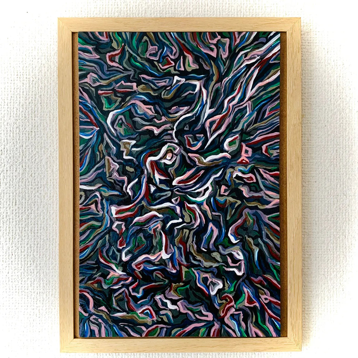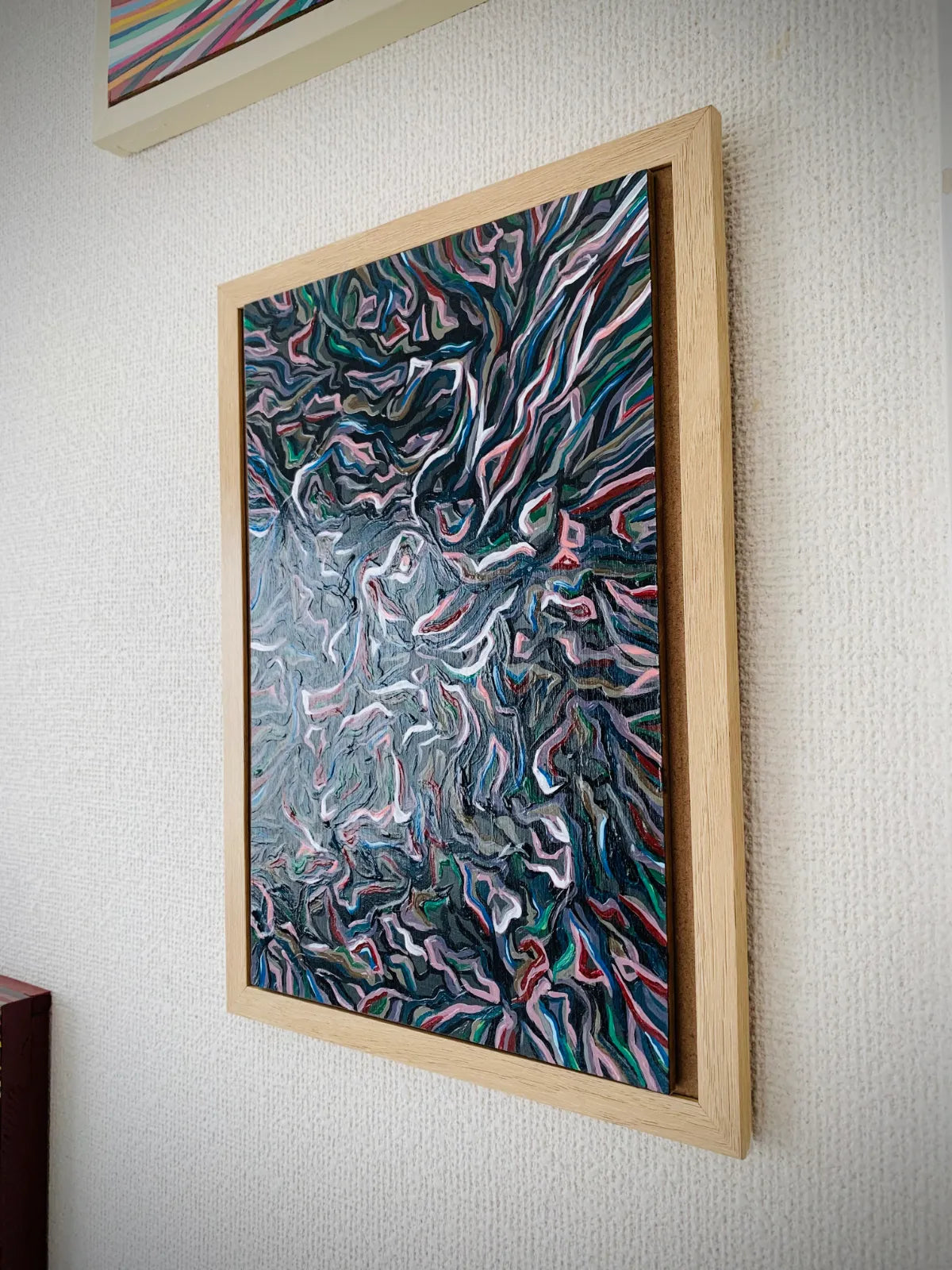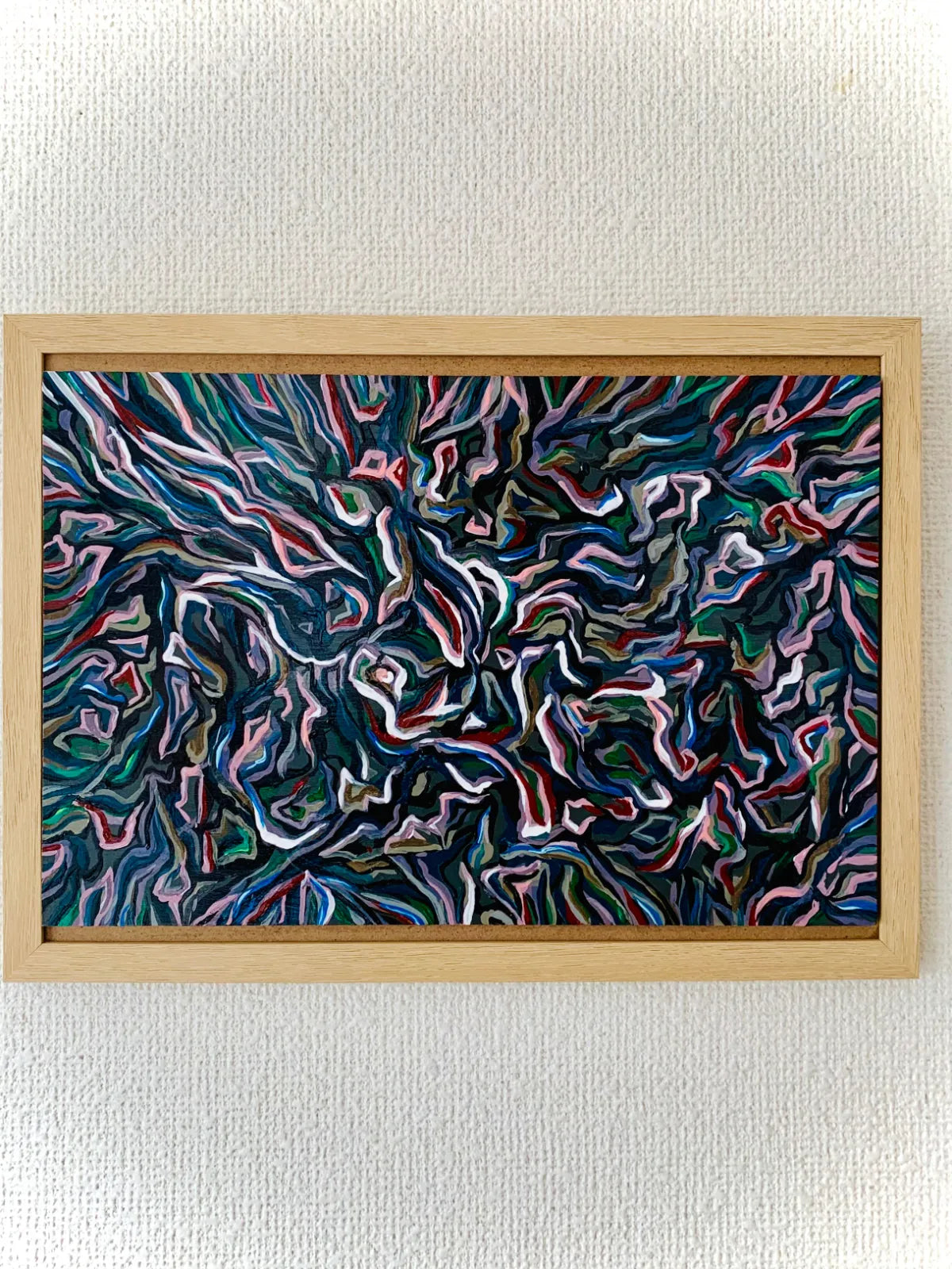 曲線が織りなす色彩の渦が、見る者を引き込む作品です。深みと鮮やかさを兼ね備えた色が層を成し、心にさまざまな情景を呼び起こします。飾ることで空間に動きと静けさを同時に感じさせ、モダンで洗練されたインテリアに調和します。