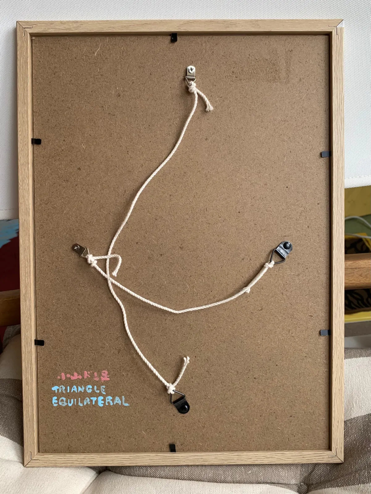 サインあり。額と木板に描いた作品が一体化した作りになっています。