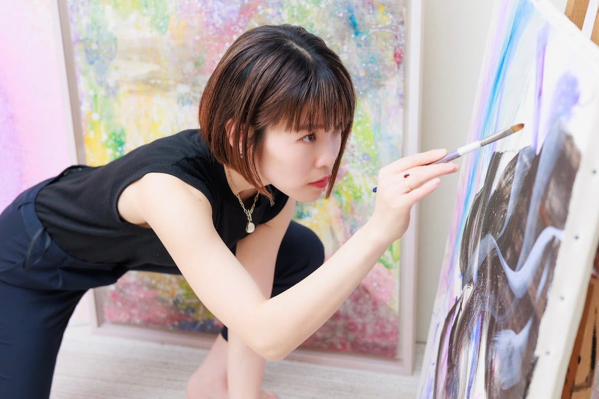 - 2020年よりアーティストとしての活動を開始し、1年で3回の個展を開催。個人宅からオフィス・店舗まで200点近くの作品を納品しました。これまで培った人材育成やコピーライターとしての経験を生かし、見る人の感情を揺さぶる作品づくりが目標。作品を通じて、自己承認を伴う深い癒しや、意味のないものを自分に許す自由を、お届けしたいと思います。