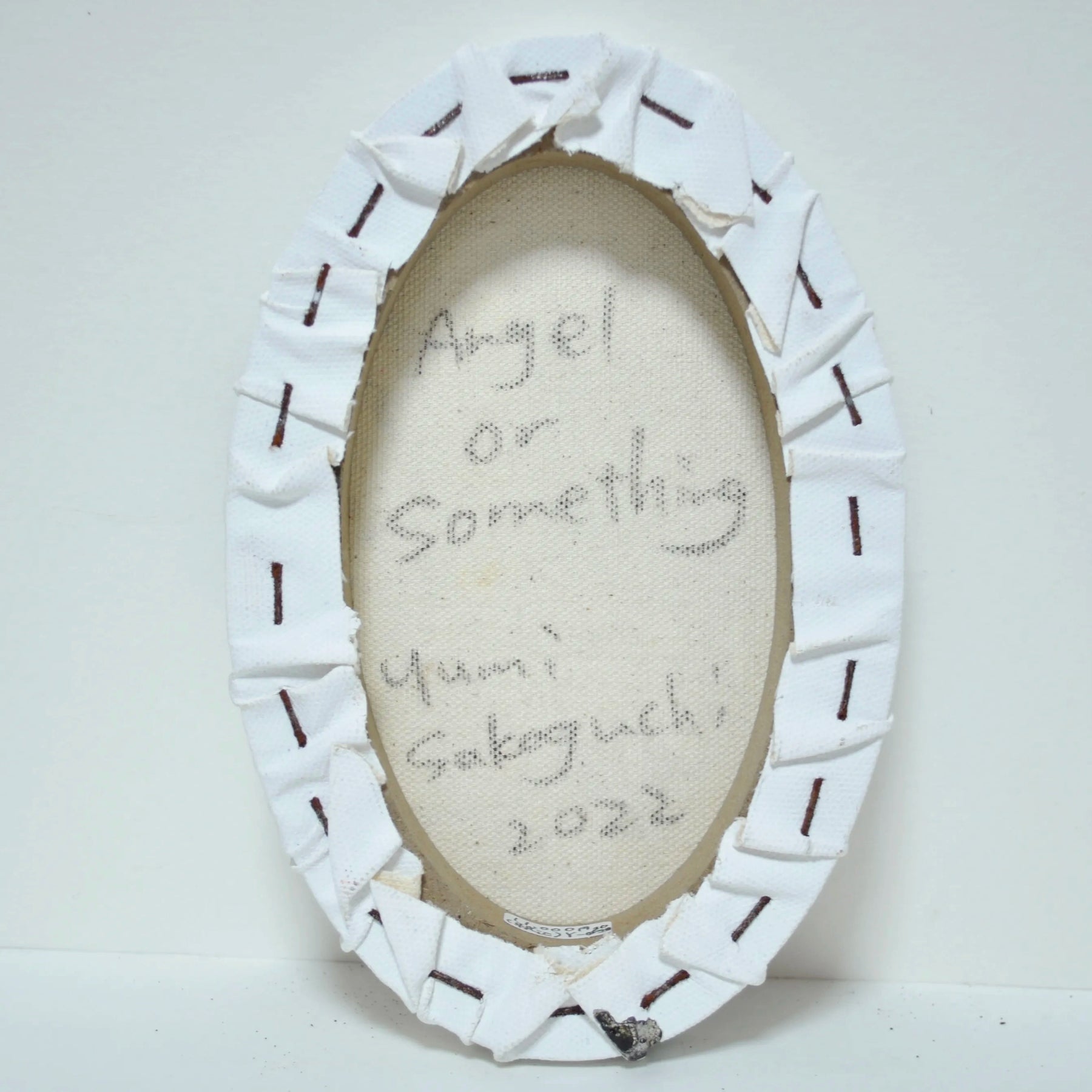 クリスマスツリーのオーナメントのように、壁にかけられる小さな絵画です(オーナメント・シリーズ)。Angel or something =「天使かなにか」で、羽とトゲのあるフォルムを描きました。