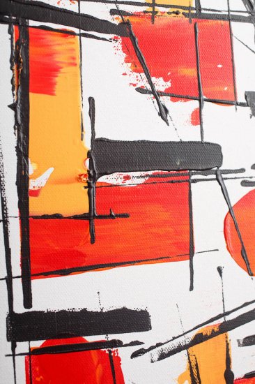 作品のアクセントとなっているブラックの直線は、レッドの絵の具に新たな形を与えています。