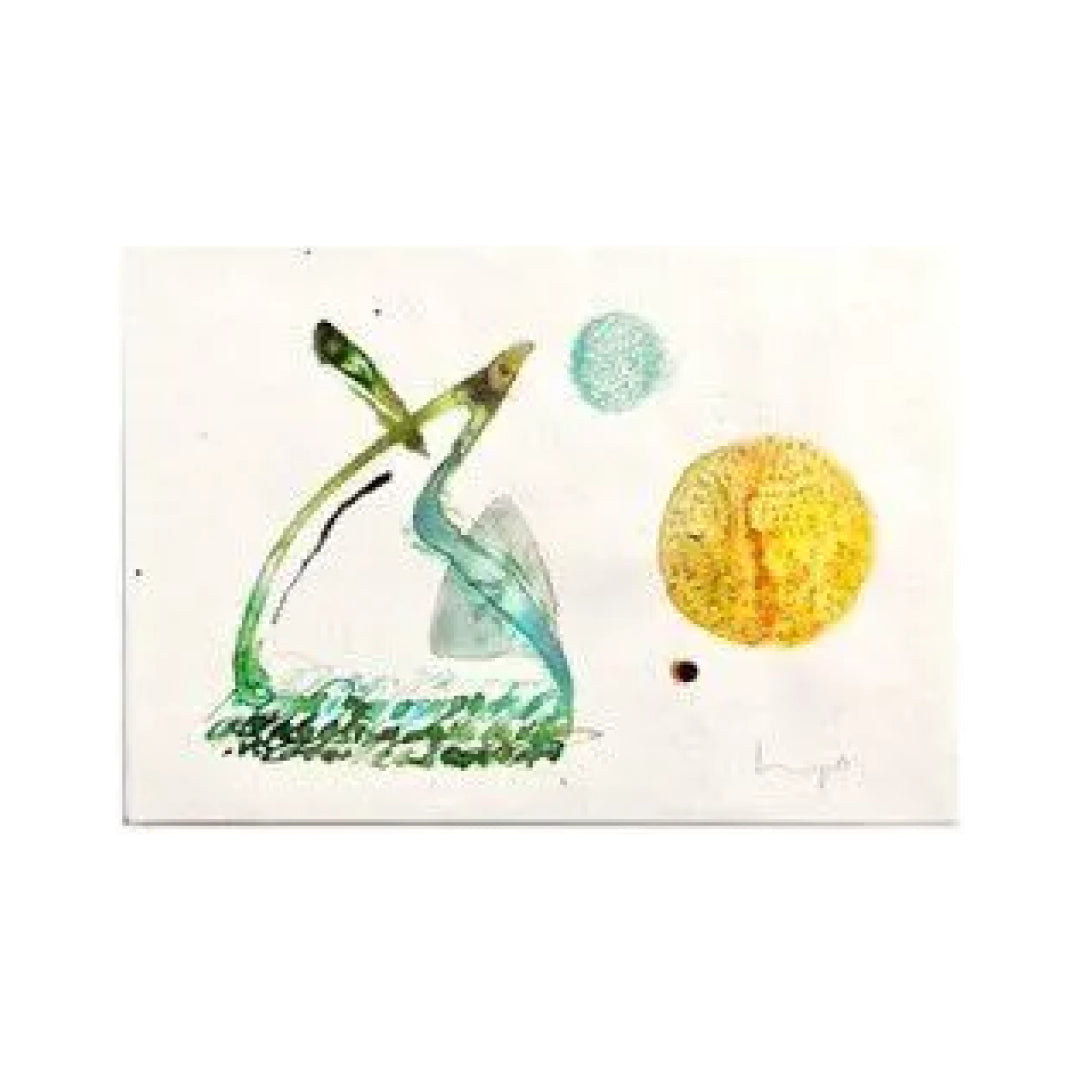 アーティストが自然との対話を通して描いた作品集から、「種」をテーマにした作品の原画です。ふわりと風に舞う丸い種はやがてどこかに着地して発芽し、茎や葉を伸ばし、次々と姿を変えていくことになるでしょう。