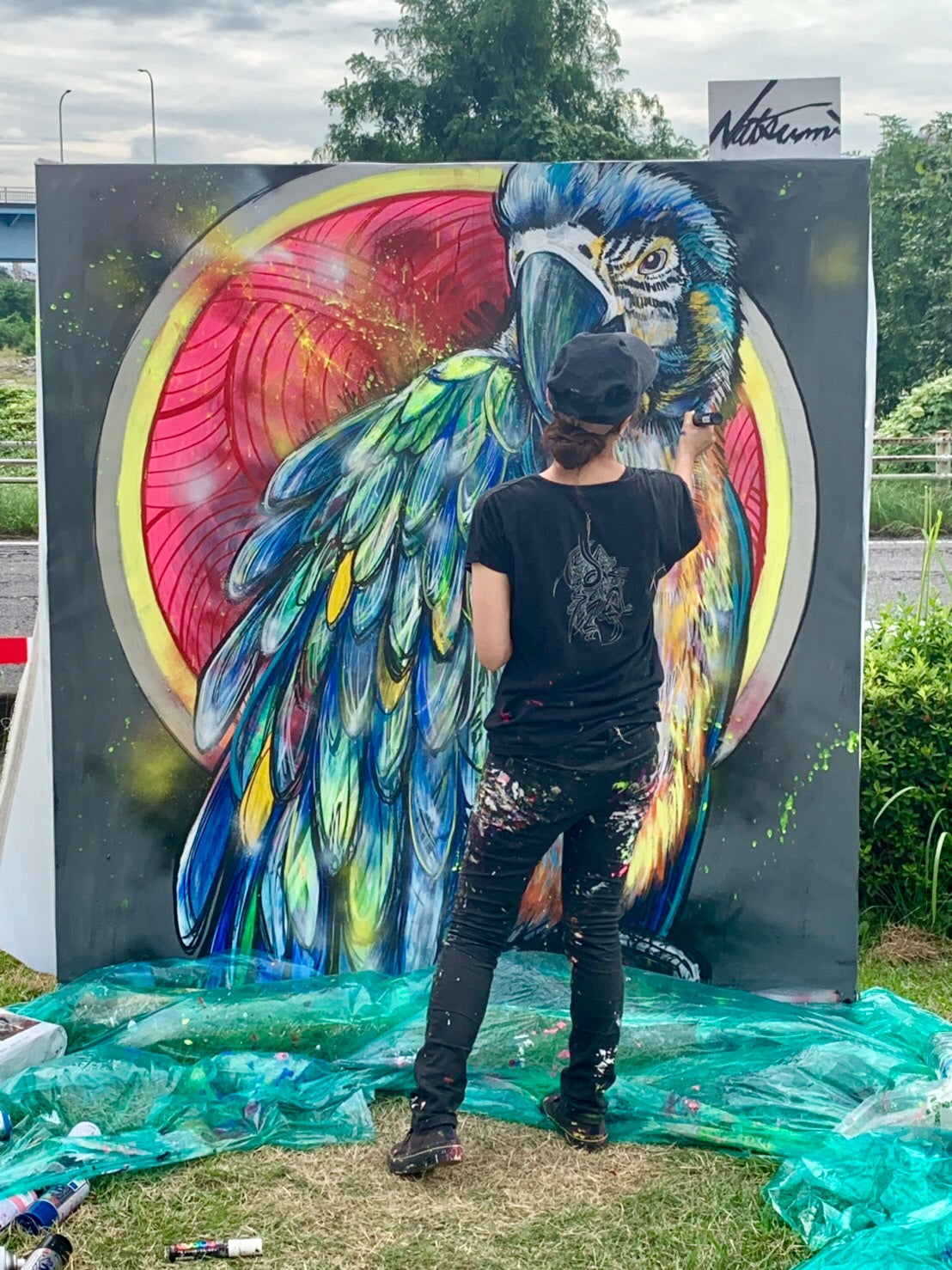 武蔵野美術大学で油彩画を学び、世界各国の美術館を巡る旅を経て独自の色彩感覚を研鑽。「光」をメインテーマに、アクリル画によるキャンバス作品やダイナミックな壁画を展開する一方、創業から続く印章店「述章堂」の5代目として、刻字・篆刻の伝統を継承する。毎日書道展毎日賞など、書道・刻字界での受賞歴も多数。