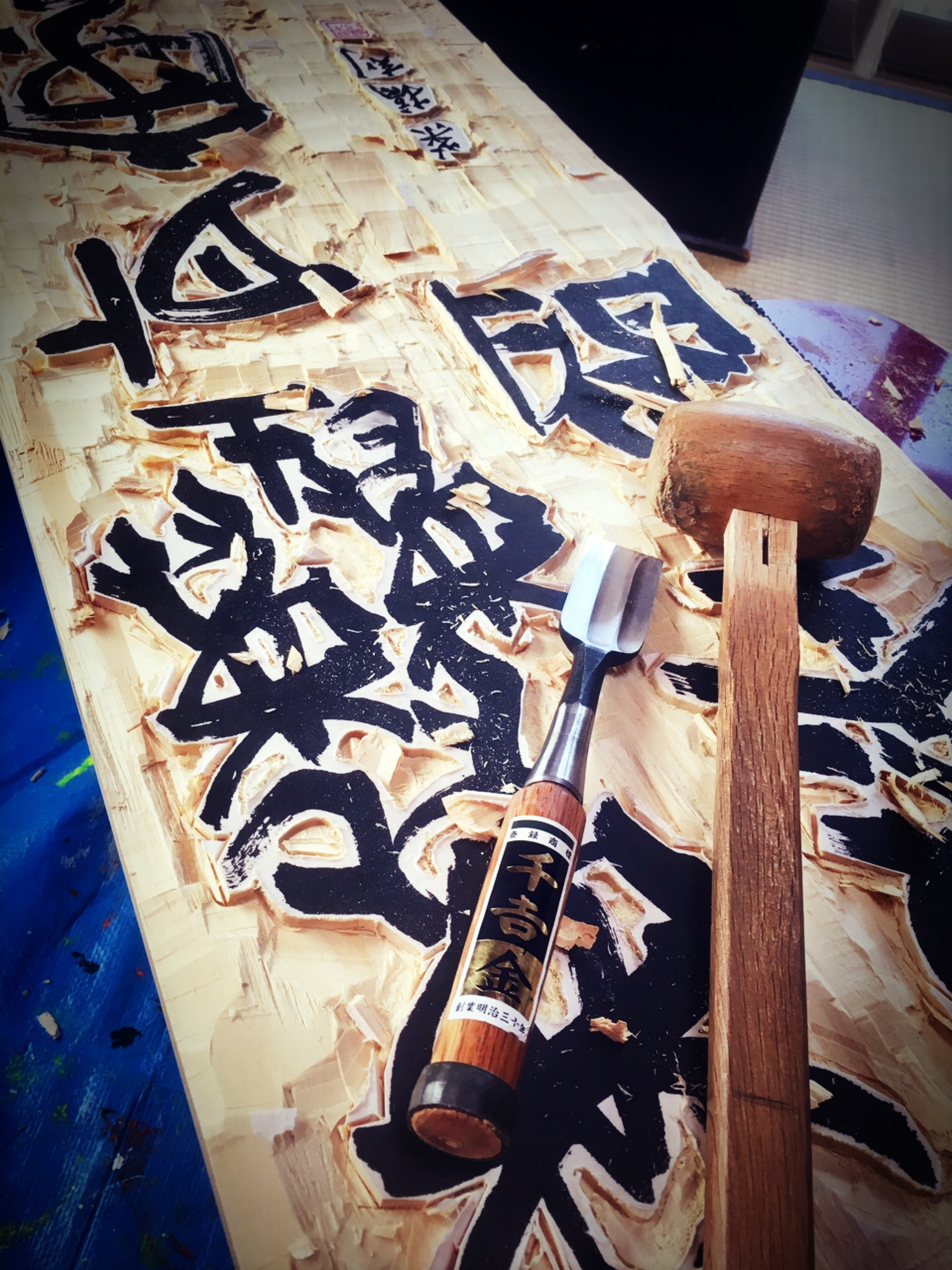 流動的な「光」の表現と、文字を石や木に刻み込む「不変」の技術。この対極にある要素を併せ持つ彼女の作品は、現代的な感性の中に、歴史に裏打ちされた深い品格と、空間を浄化するような瑞々しい輝きを宿している。