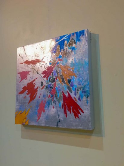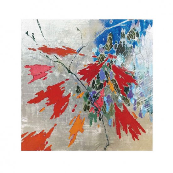 シンプルでカラフルな表現で、自然を描き出す高原秀平。当作品は珍しいシルバー地に様々な画材で木々や花を描き、その色のバランスや質感の違いを楽しめる作品で、5連作となっています。