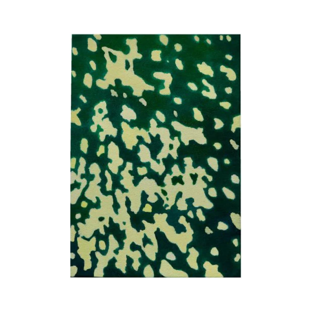 深みのあるグリーンと、滲むように重なるイエローの色合いが美しい作品です。