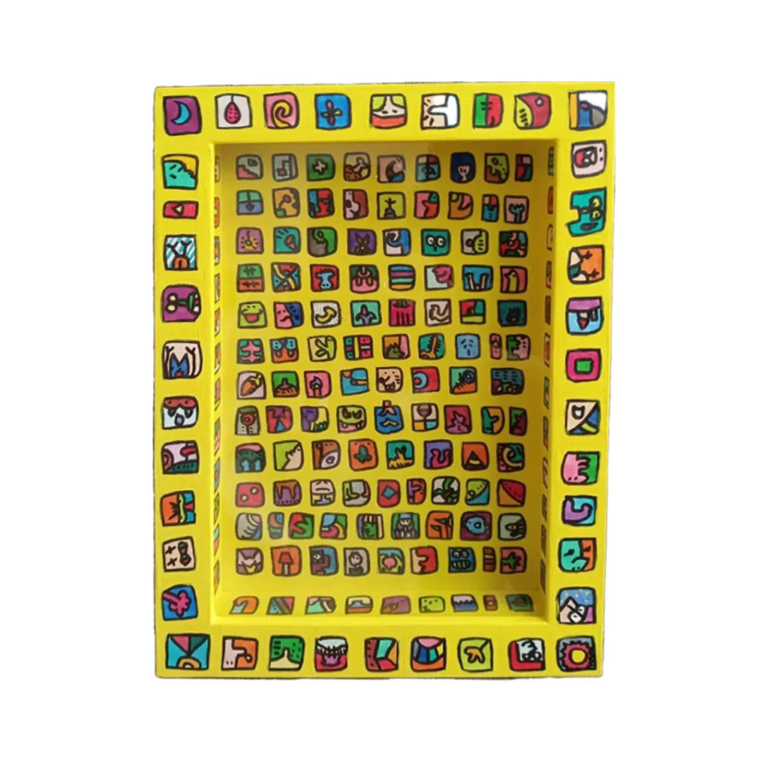 鮮やかなイエローのフレームに、多様な色の記号がちりばめられた心躍るアート作品。まるで、小さな窓から覗く秘密の言葉たちが、見るたびに新しい発見をくれるかのよう。空間に陽気でポジティブなエネルギーをもたらし、日常に彩りを添えます。リビングや玄関に飾れば、訪れる人の心を和ませ、会話のきっかけにもなるでしょう。北欧風やポップなインテリアに溶け込み、お部屋を明るく個性的な雰囲気へと変える魅力が詰まっています。