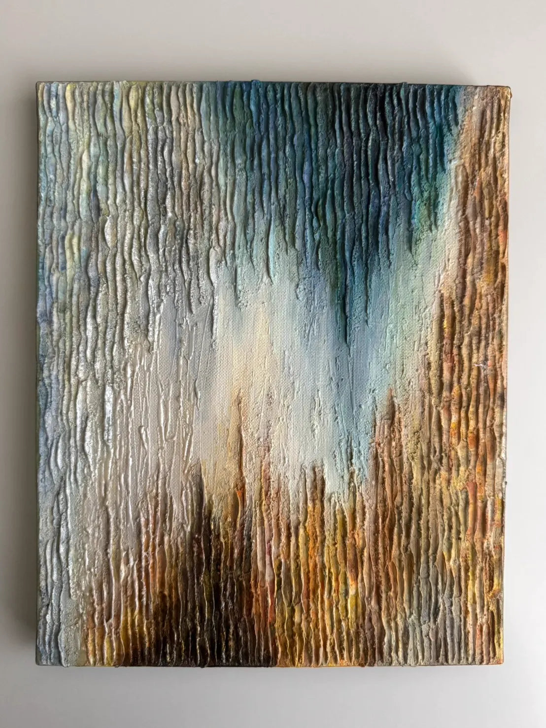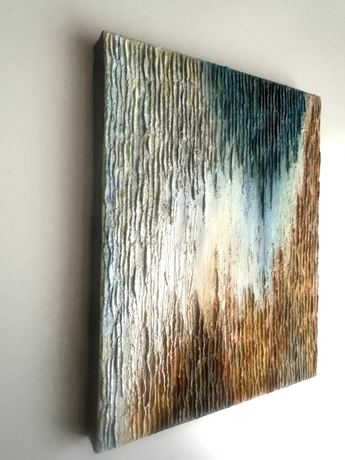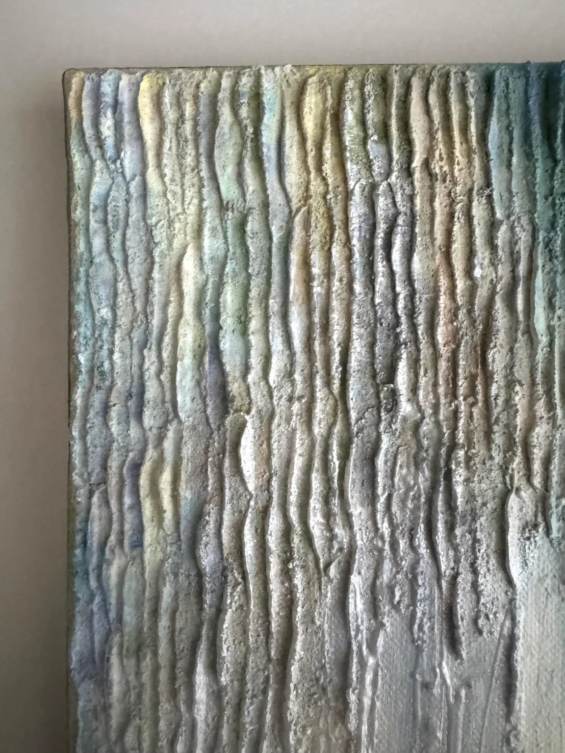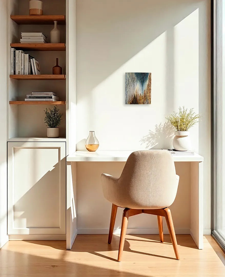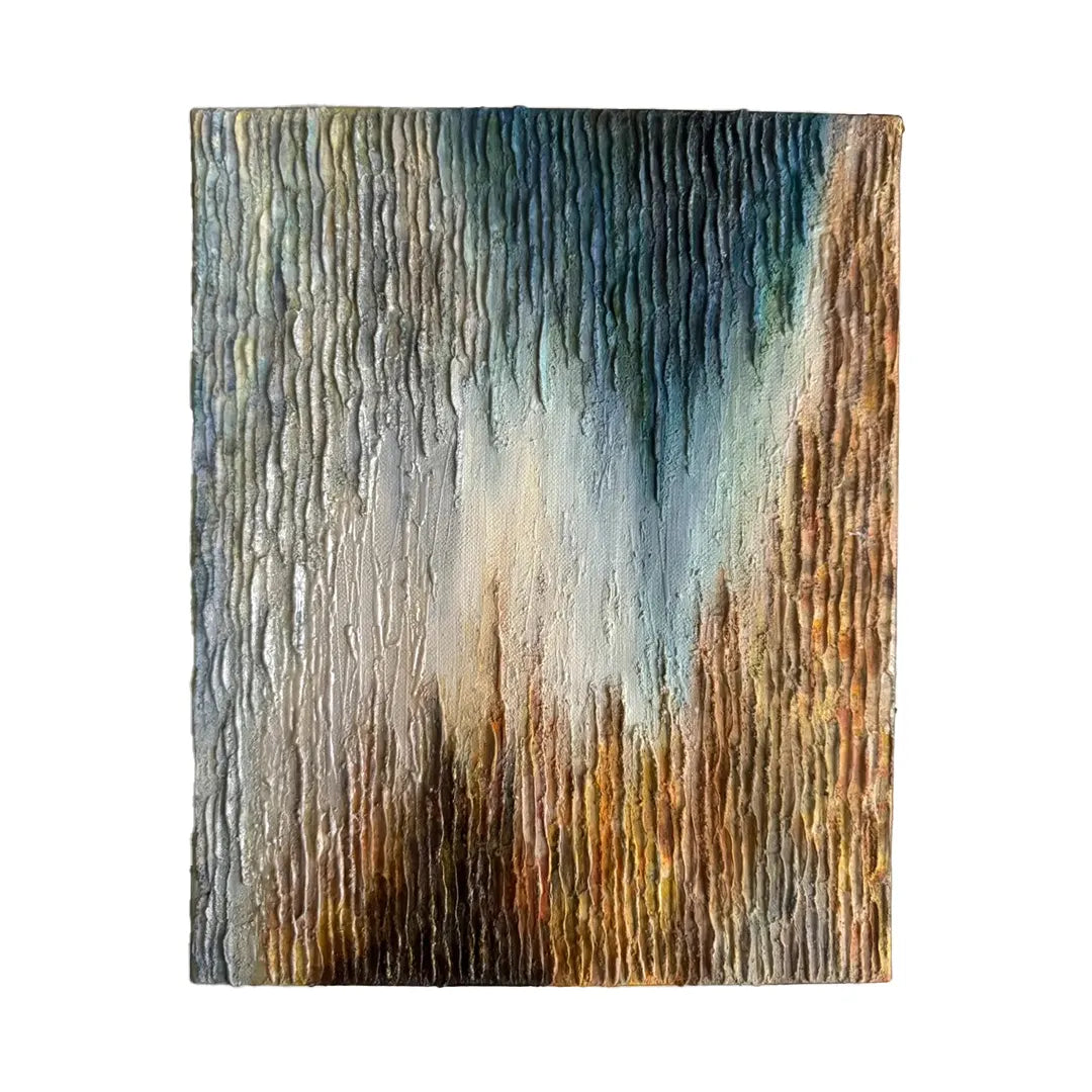 独立して重なり合う垂直の線は、それぞれが唯一無二の「在り方」を持つ個人の姿を象徴しているようです。異なる色彩が否定し合うことなく混ざり合う様は、互いの価値観を認め合い、静かに共鳴する世界の美しさを伝えます。この作品を飾ることで、自分らしさを肯定する強さが空間に宿り、日々の暮らしに心地よい調和が生まれるでしょう。自分と向き合う書斎や、大切な人を迎えるリビングのモダンなインテリアにも気高く馴染みます。