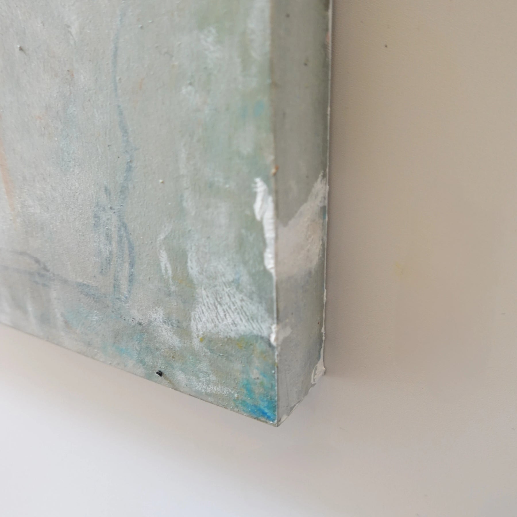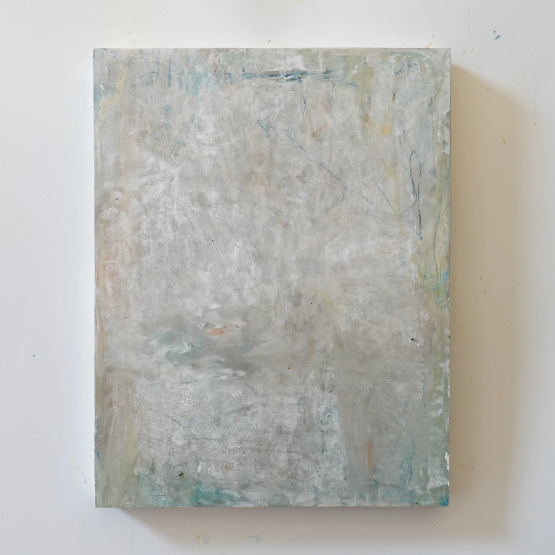 幾重にも塗り重ねられたニュートラルな色合いとマットな質感が、静かで落ち着いた雰囲気を醸し出す抽象画です。白を基調に、ほのかな水色や淡い黄色が透け、まるで霧や白い壁の時間の経過を想わせます。控えめでありながらも、深い奥行きを感じさせるこの作品を飾ることで、お部屋に静寂と洗練されたムードが生まれるでしょう。モノトーンやナチュラル、ミニマルなリビングや寝室に飾ると、深呼吸したくなる一枚です。