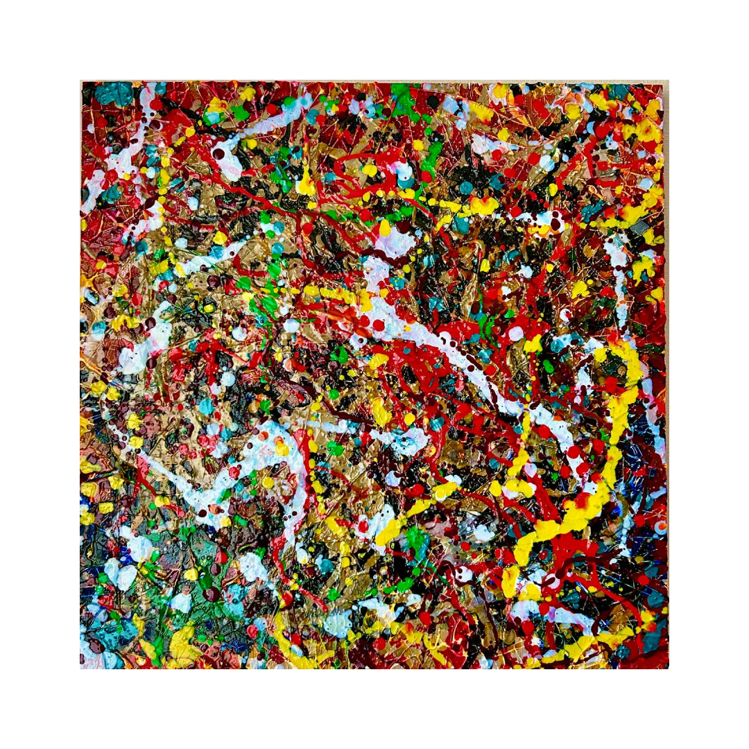 何度も何度もさまざまな色が塗り重ねられ、奥行きが感じられる作品になっています。