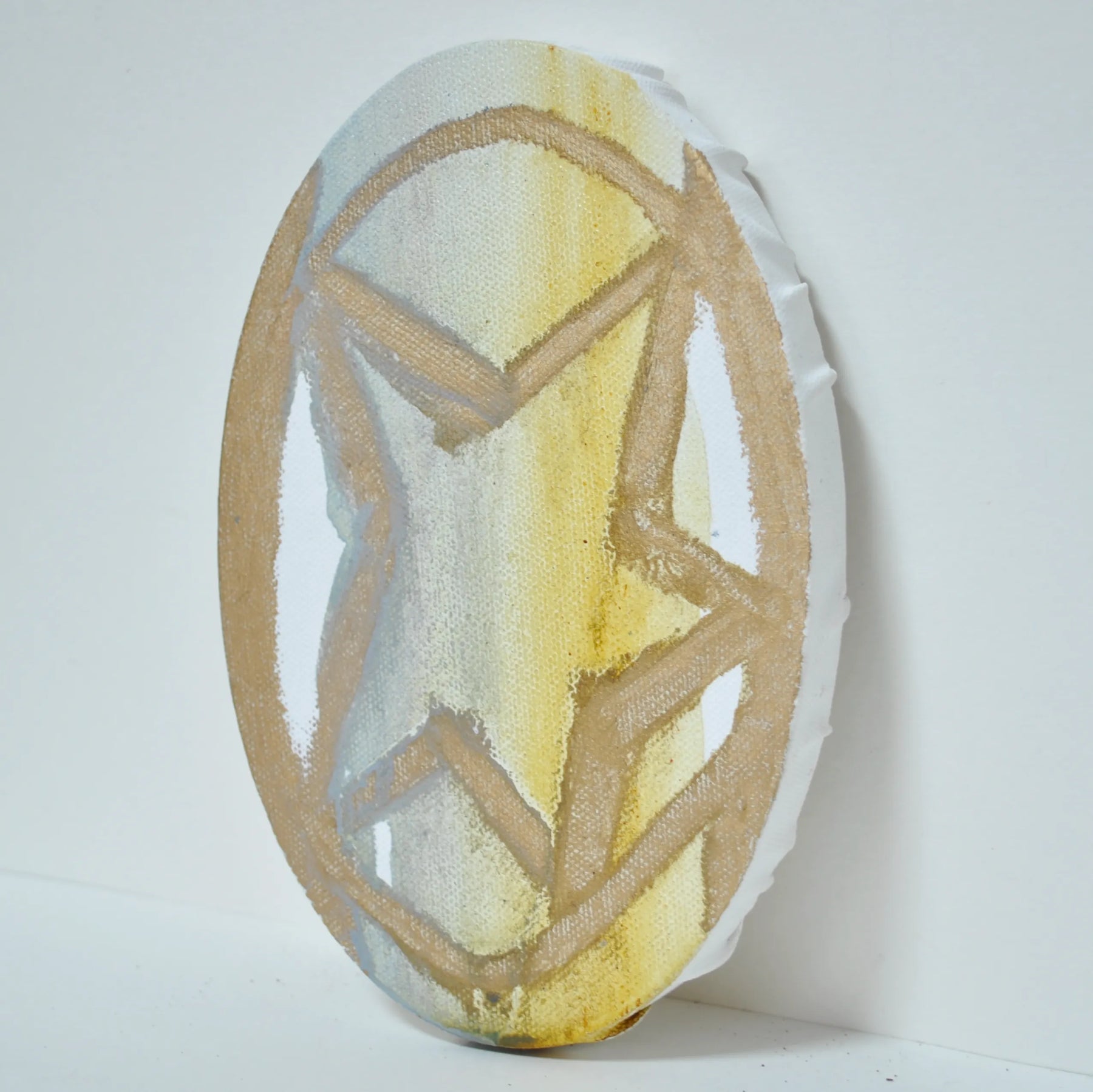 クリスマスツリーのオーナメントのように、壁にかけられる小さな絵画です(オーナメント・シリーズ)。この作品はツリーの1番上につける星をイメージして描きました。